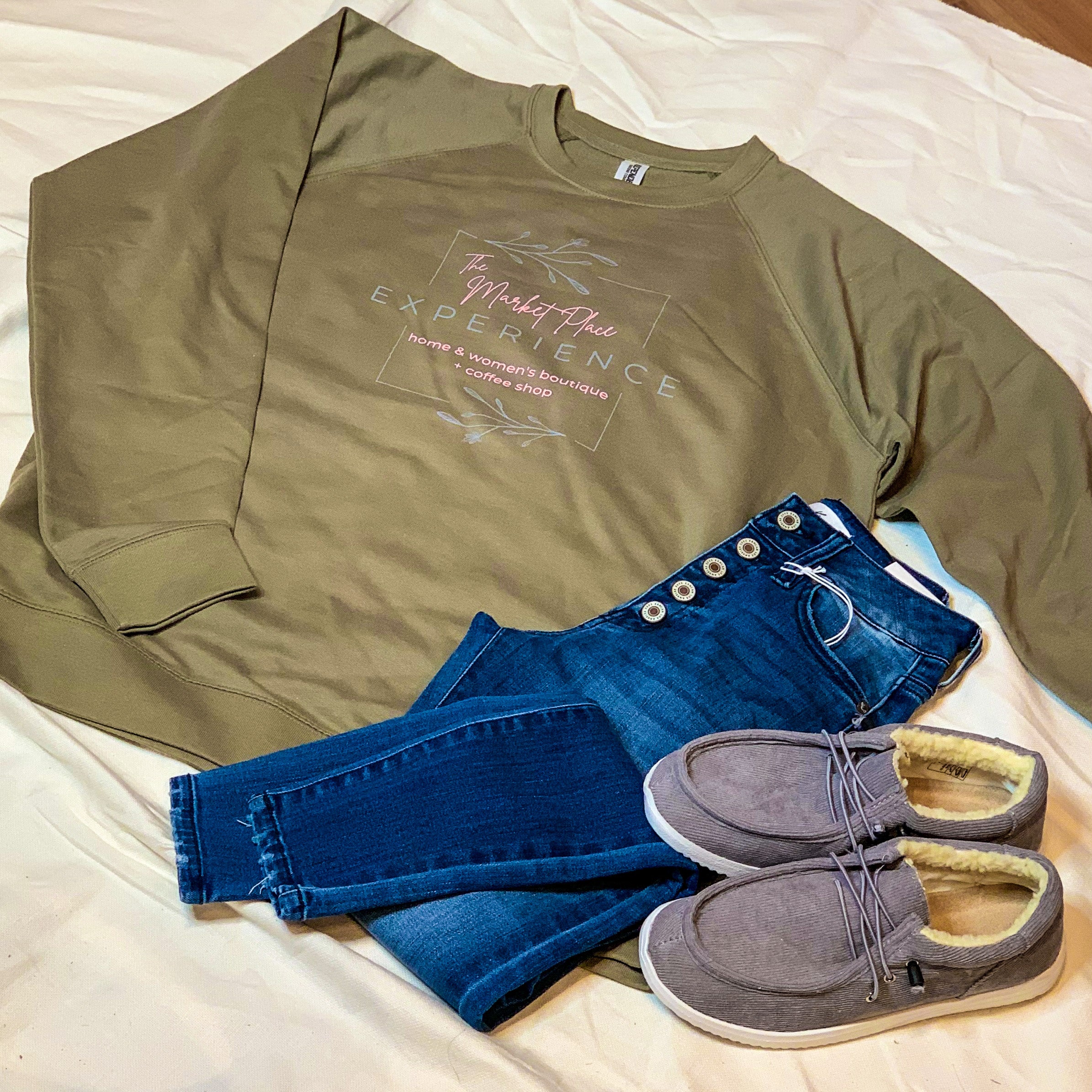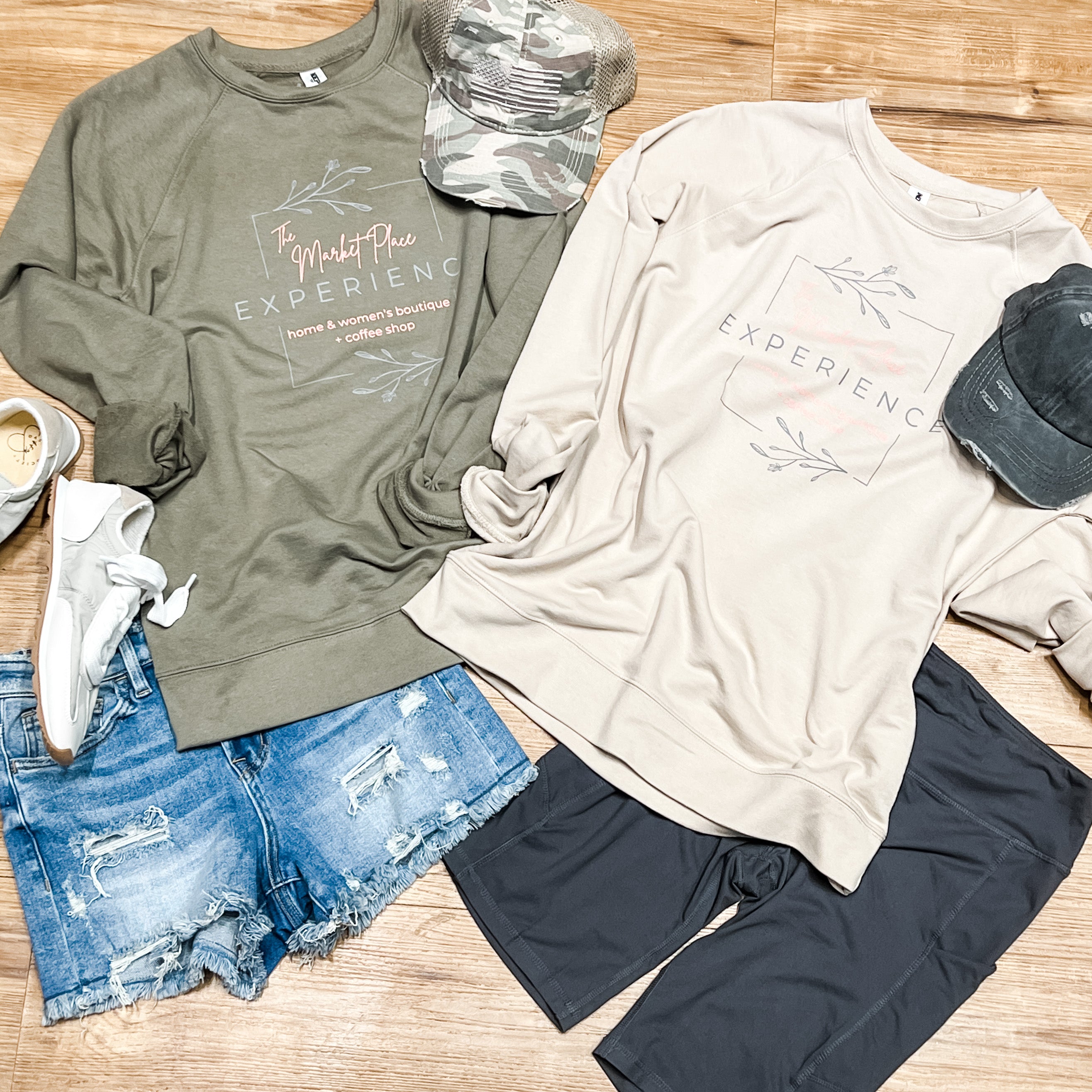 Description: Market Place logo lightweight sweatshirt to showcase your favorite boutique. New printed logo in gray and pink.