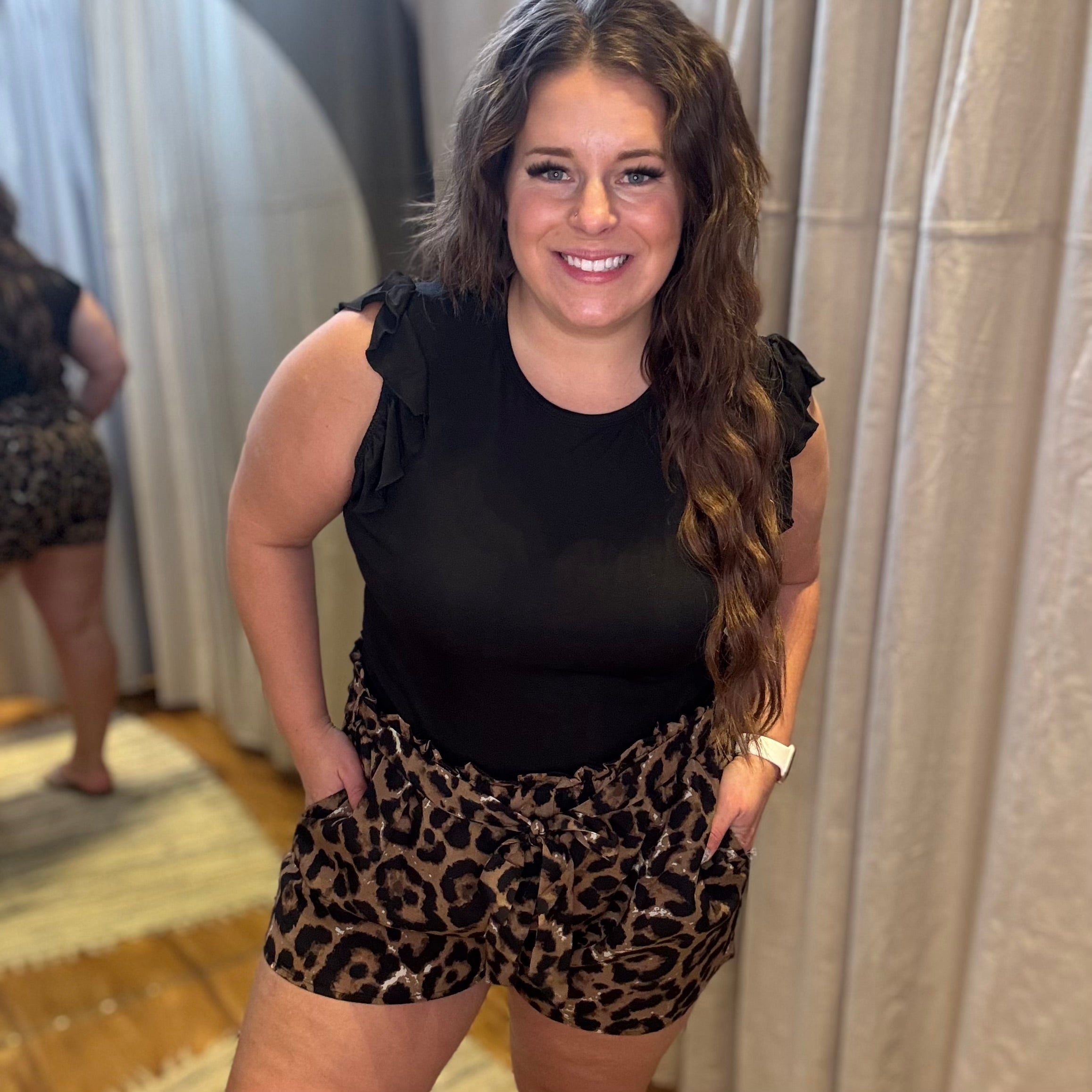Enhance your wardrobe with our Plus Black Ruffle Shoulder Top. The elegant black color and chic ruffle shoulder design will elevate any outfit.