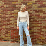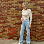 Elevate your style with our Vintage Super High Rise Flare Vervet Jeans. With a classic vintage look and a super high rise, these jeans will make you stand out from the crowd. The flared design adds a fashionable touch while providing a comfortable fit. Upgrade your denim collection today!