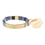A mosaic of semi precious stones and matte tile beads are strung together with empowering words to inspire positivity.