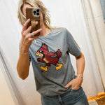 This vintage ISU Cy SS Tshirt features a heather grey color and a comfortable short sleeve design. Perfect for showing your Iowa State University pride in a stylish and timeless way.