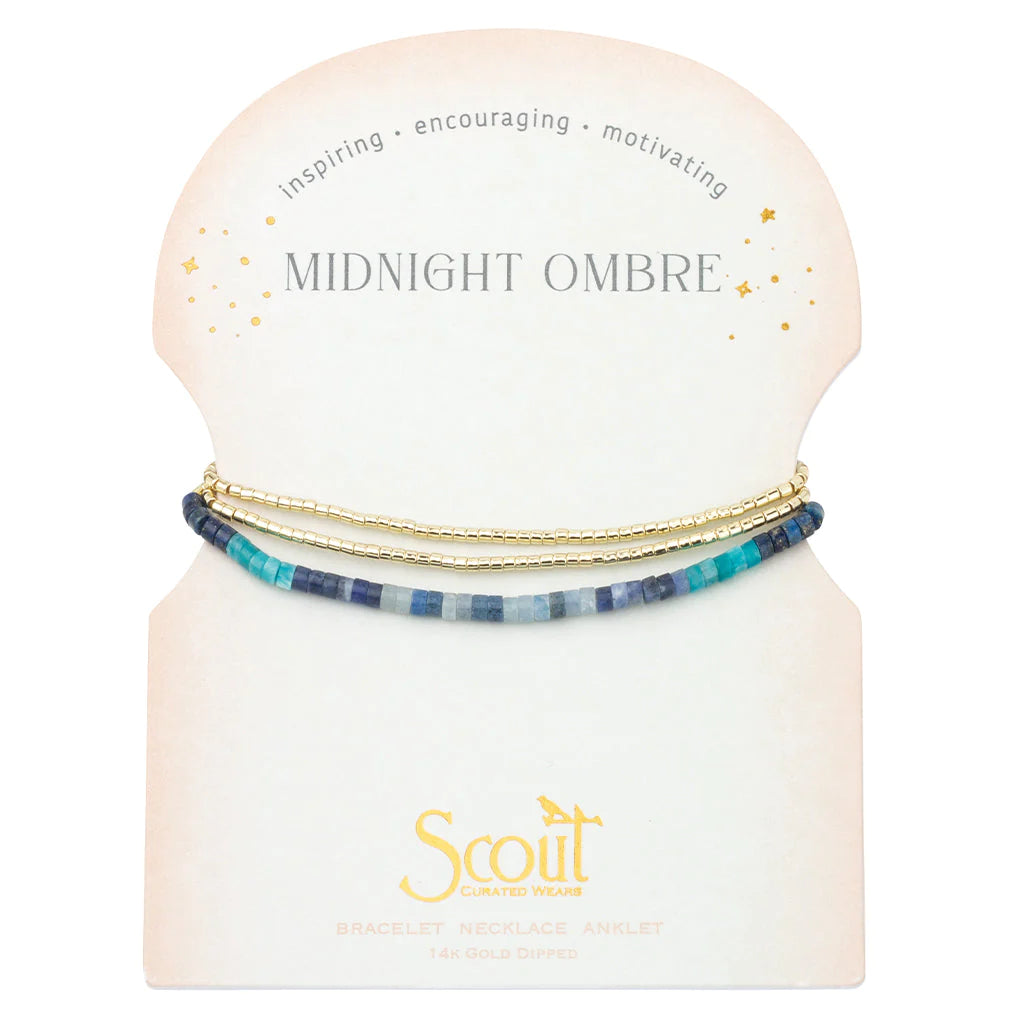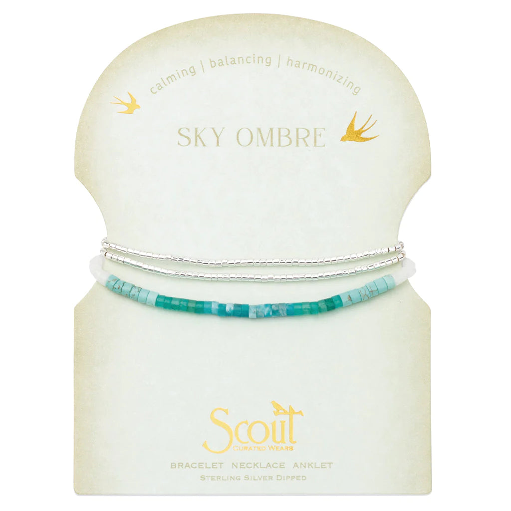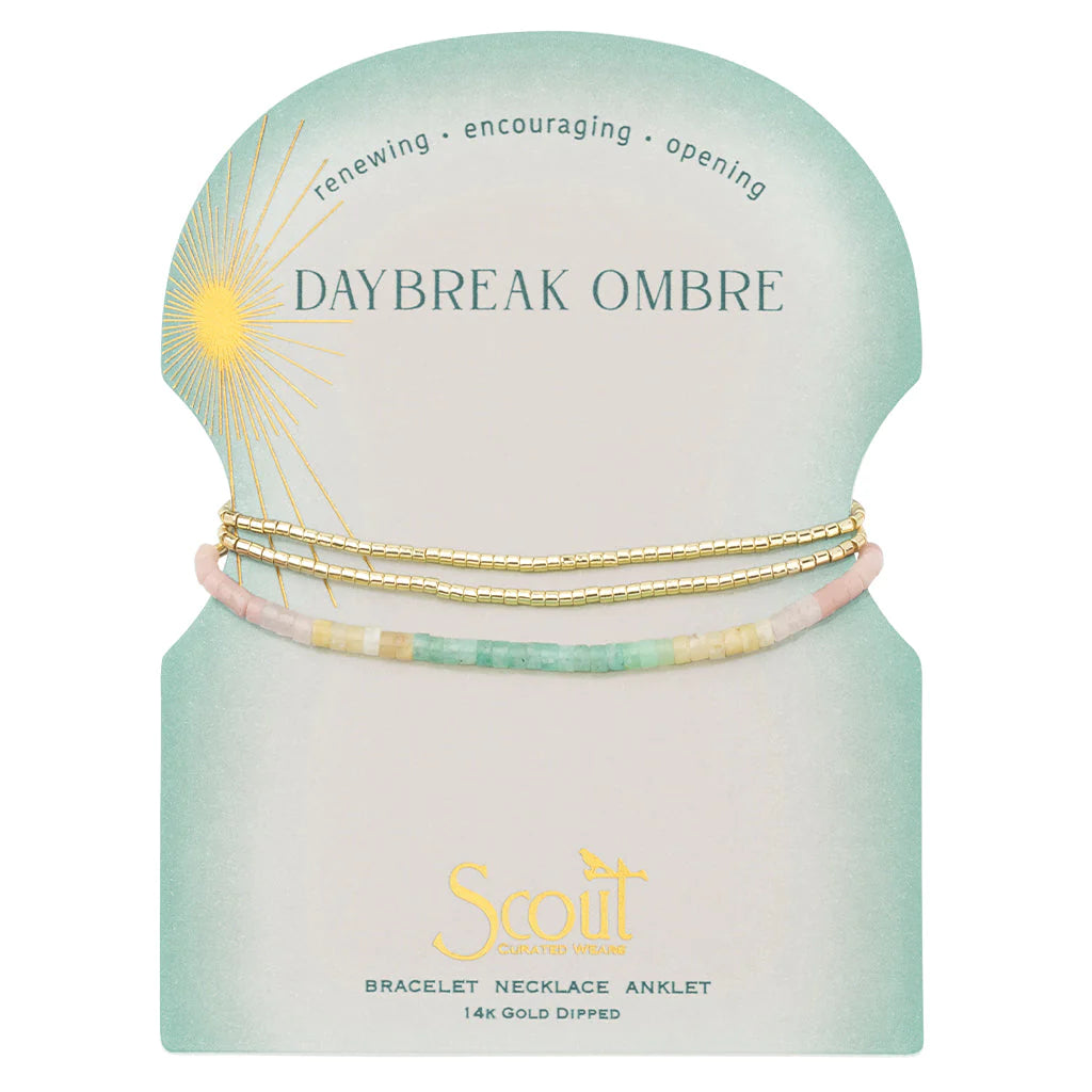 Strung with gracefully gradient semi-precious gemstones. Our newest wrap is made to embellish the wrist, ankle or neckline.