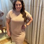This dress seamlessly blends fashion and functionality with its ribbed fabric, short sleeves and convenient pockets. The ribbed fabric adds texture and depth, while the short sleeves provide a flattering fit. The functional pockets offer practicality without compromising style. Upgrade your wardrobe with this versatile dress.