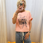 Made with high-quality materials, this top is a must-have for any fashion-forward individual. Show off your small town pride in style with this long style crop top.