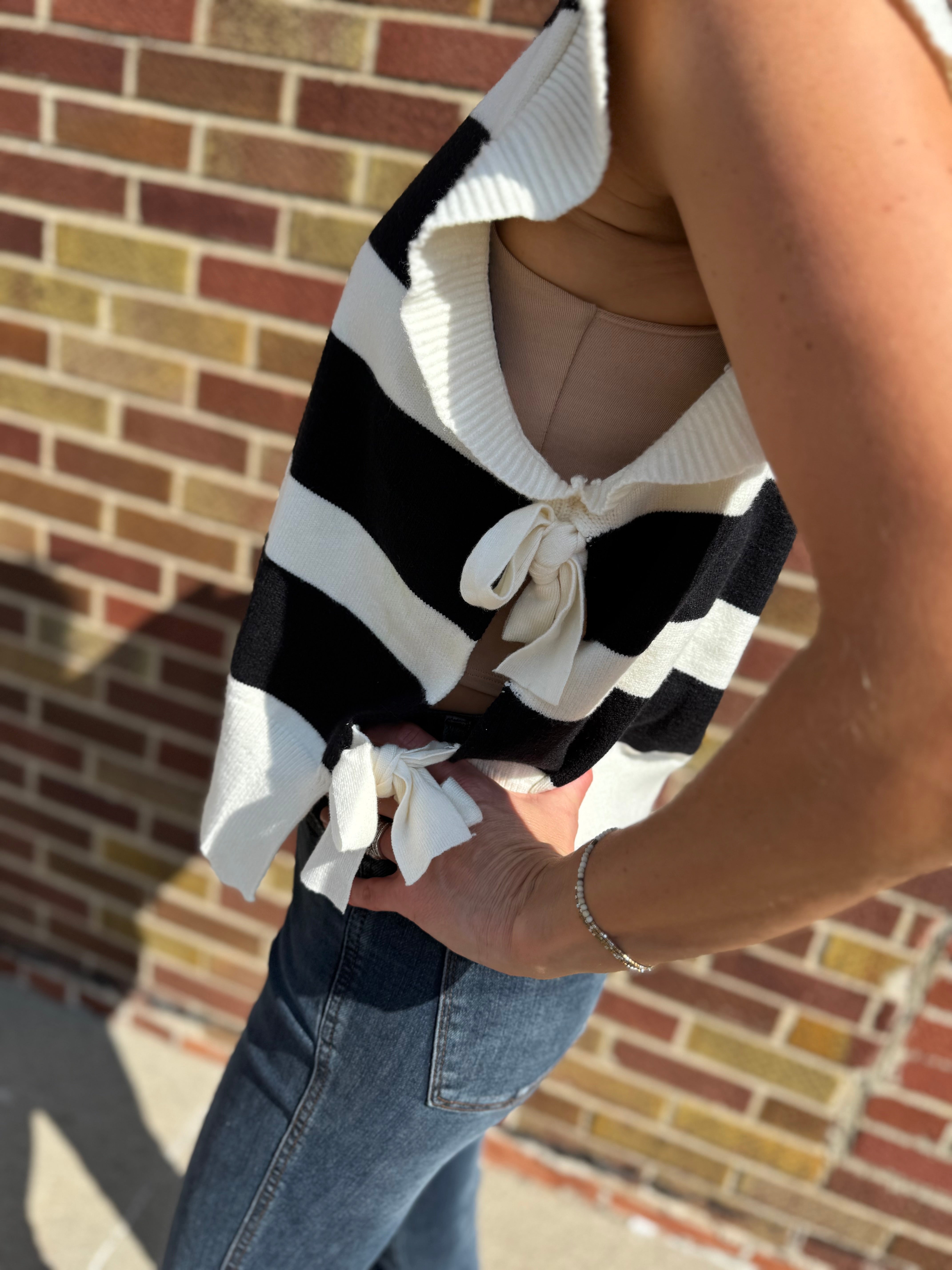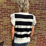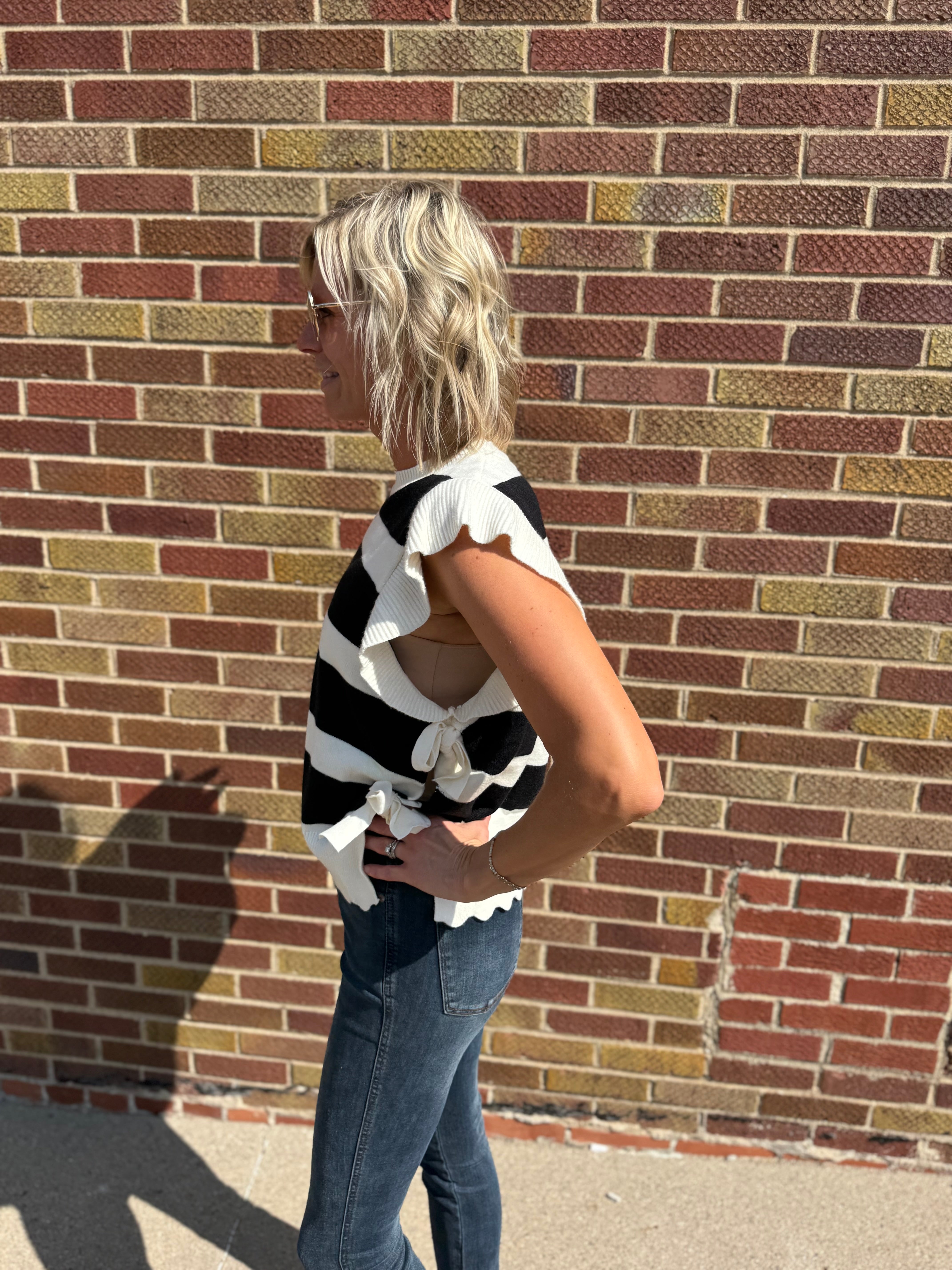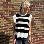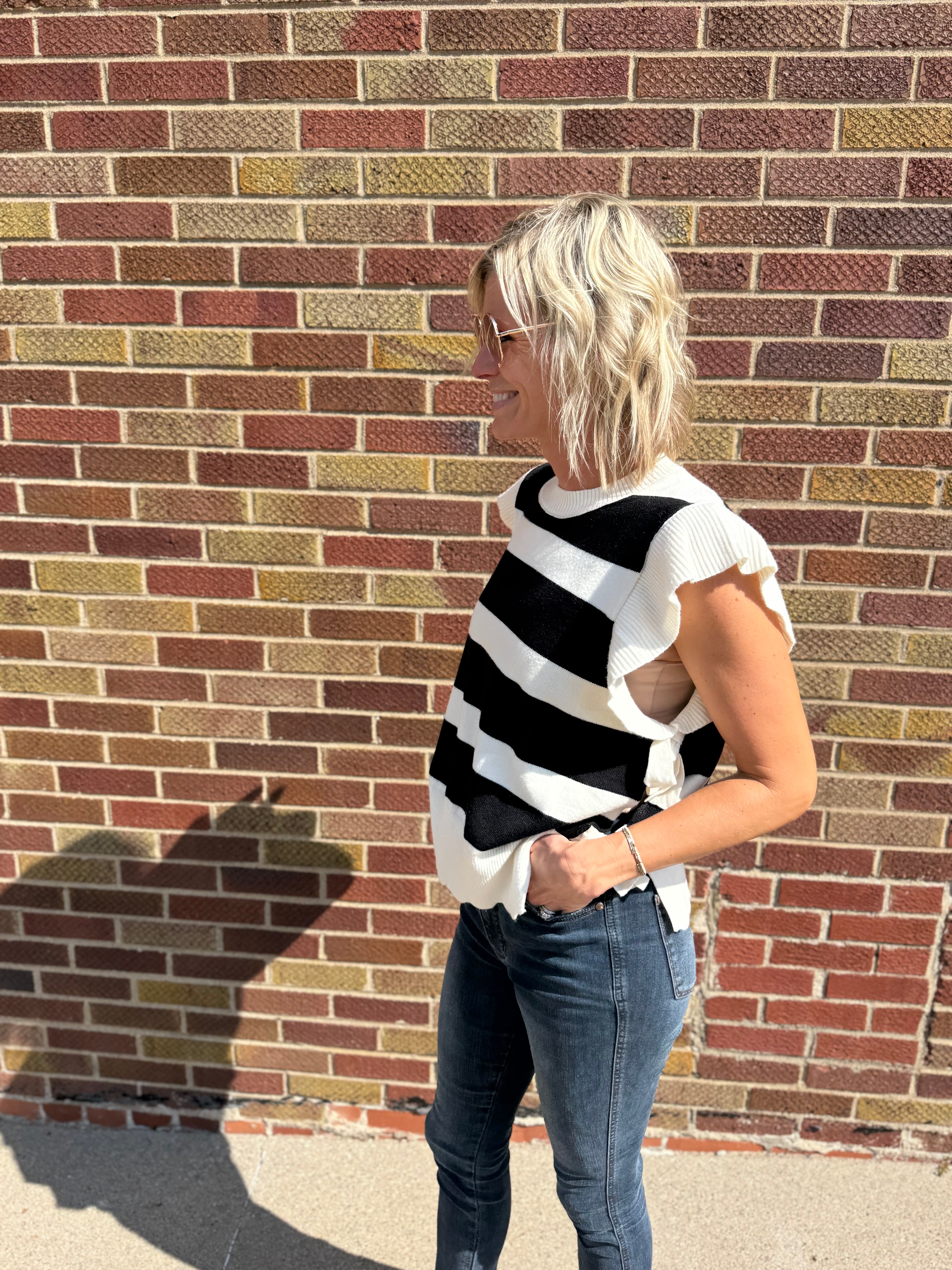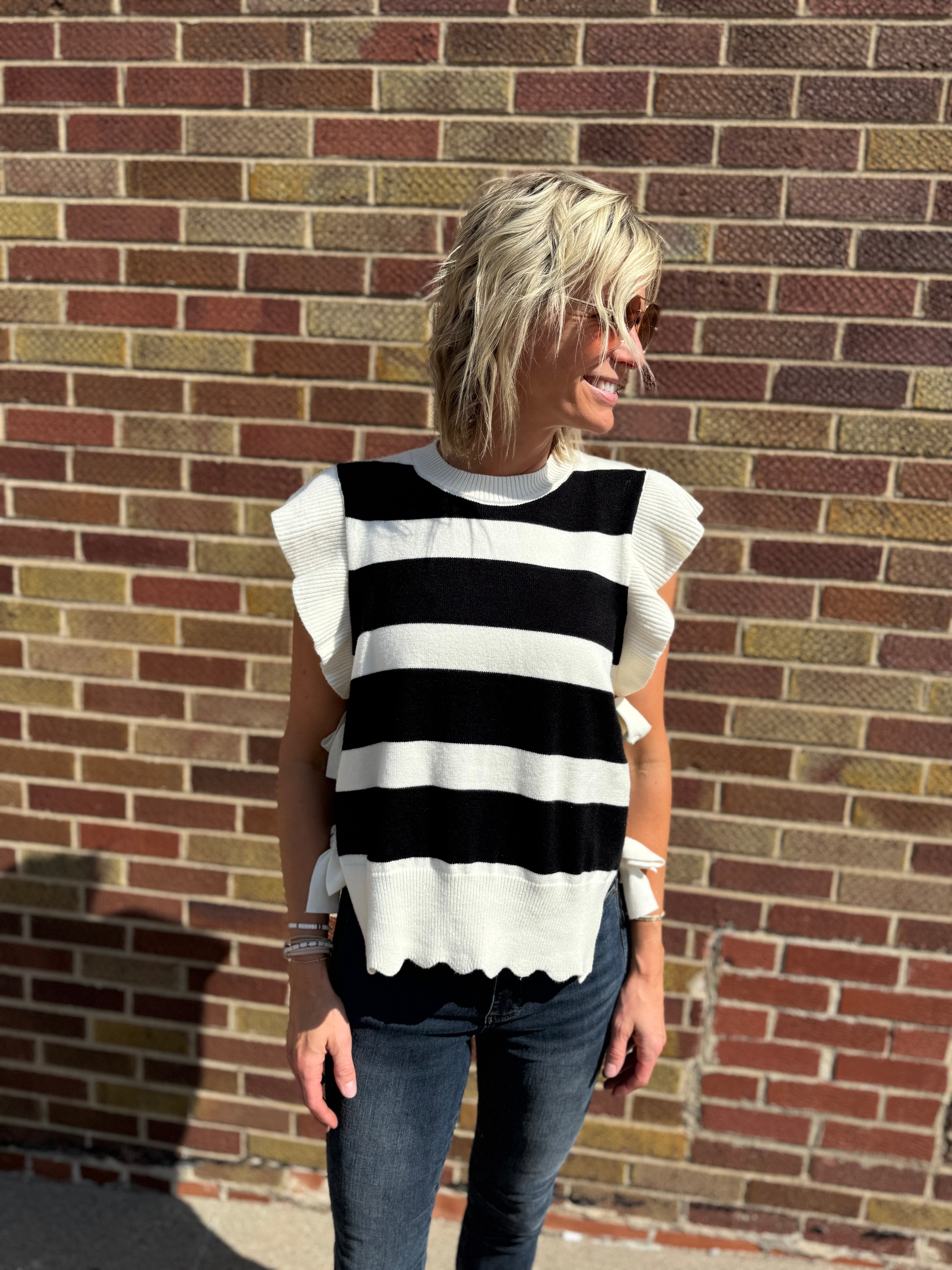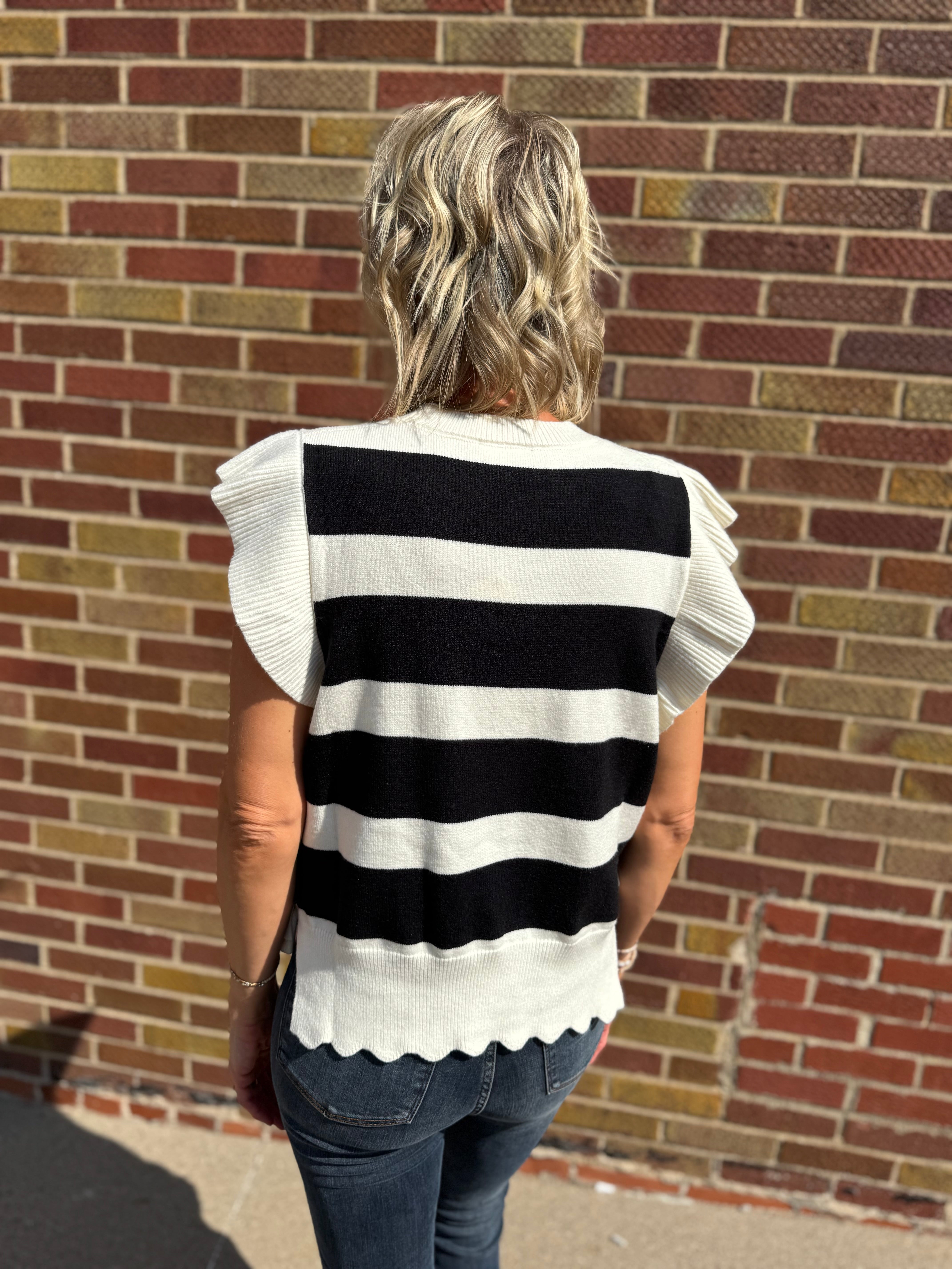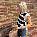 Bold Stripe Sweater Top w/Ruffled Sleeve