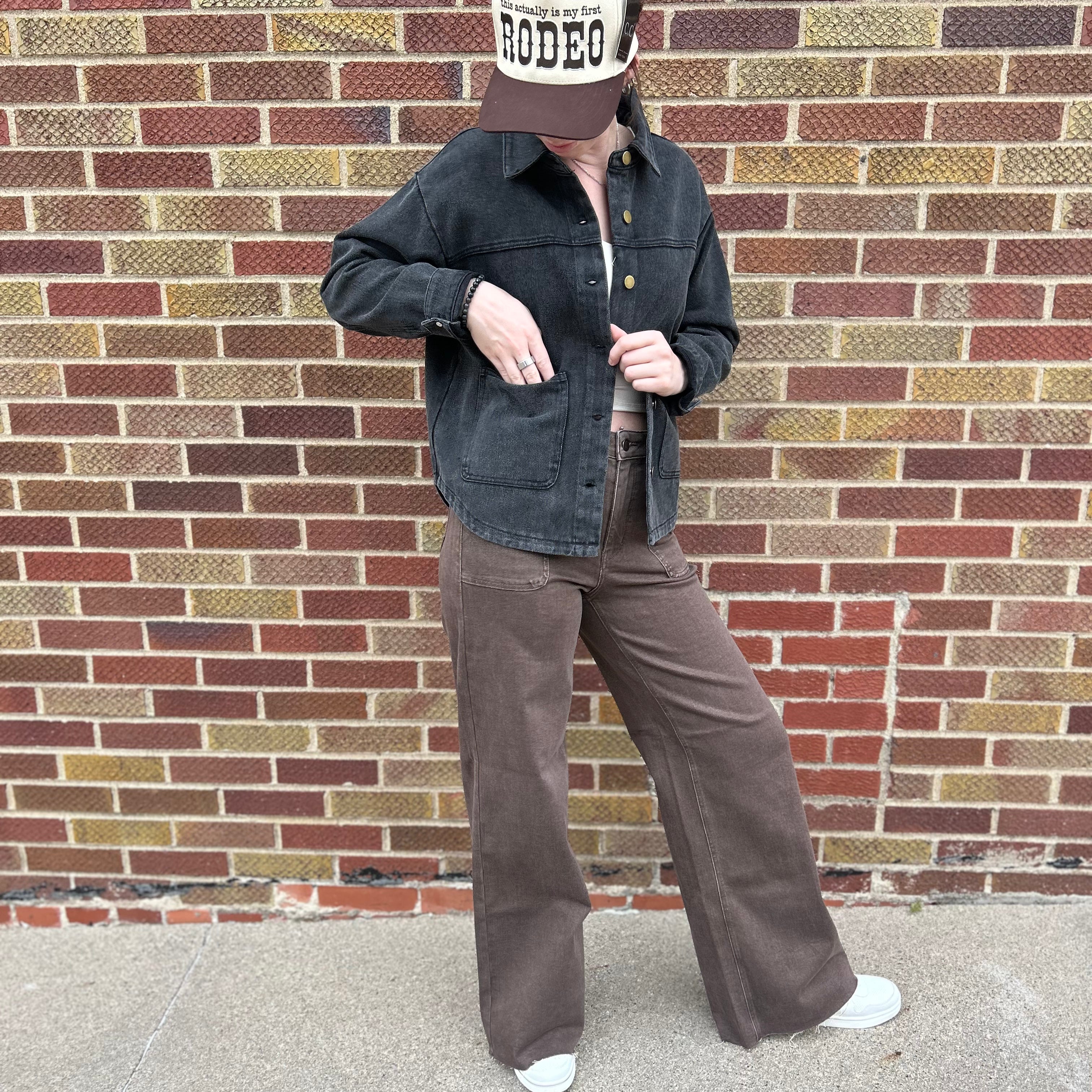 Add some edge to your outfit with the Button Down Distressed Wash Canvas Jacket! Featuring a cool worn-in look and handy pockets, this jacket is perfect for layering with a playful twist. It’s your new go-to for casual days when you want to keep things comfy and effortlessly stylish. Comes in styles Black and Copper.