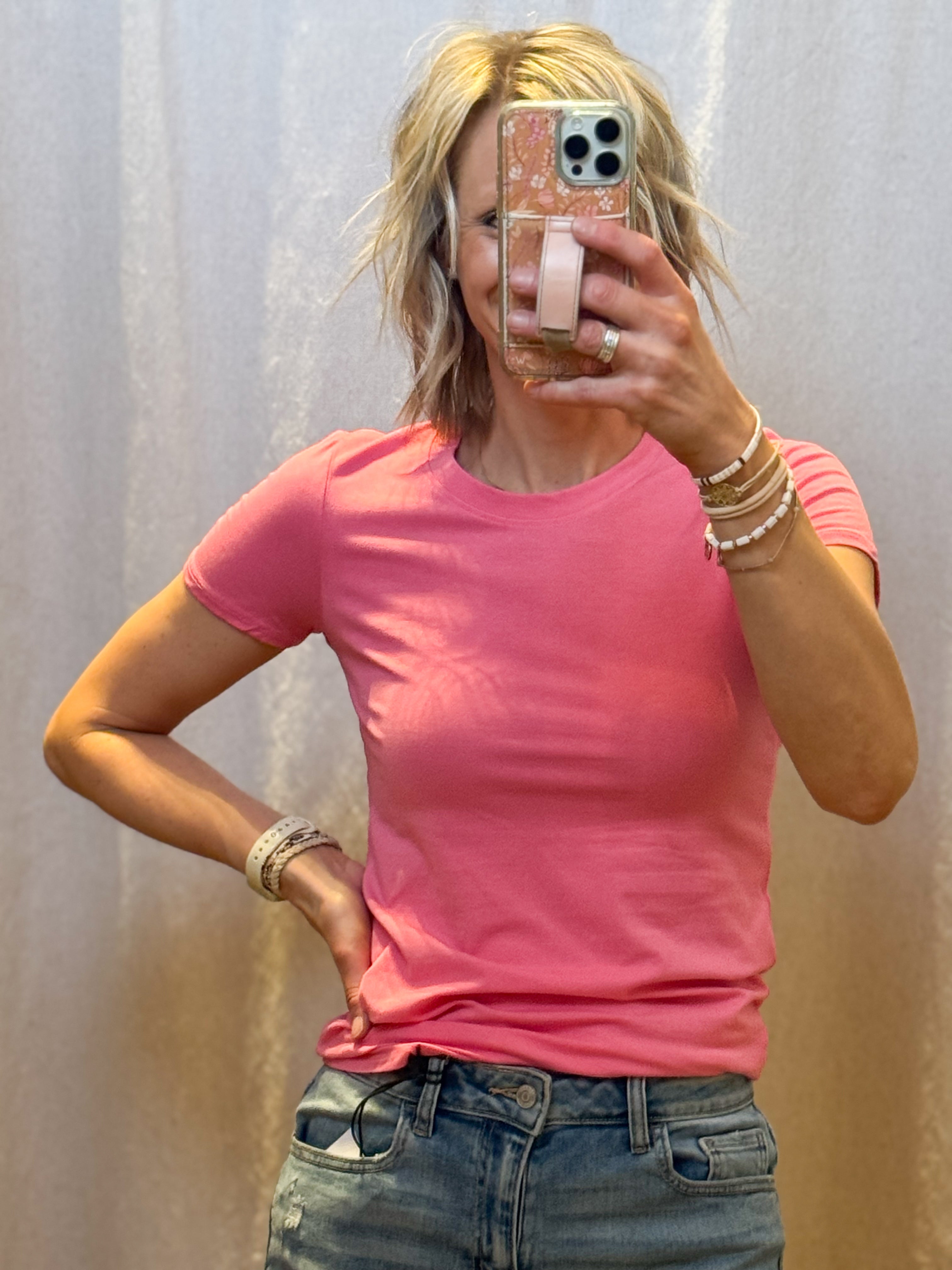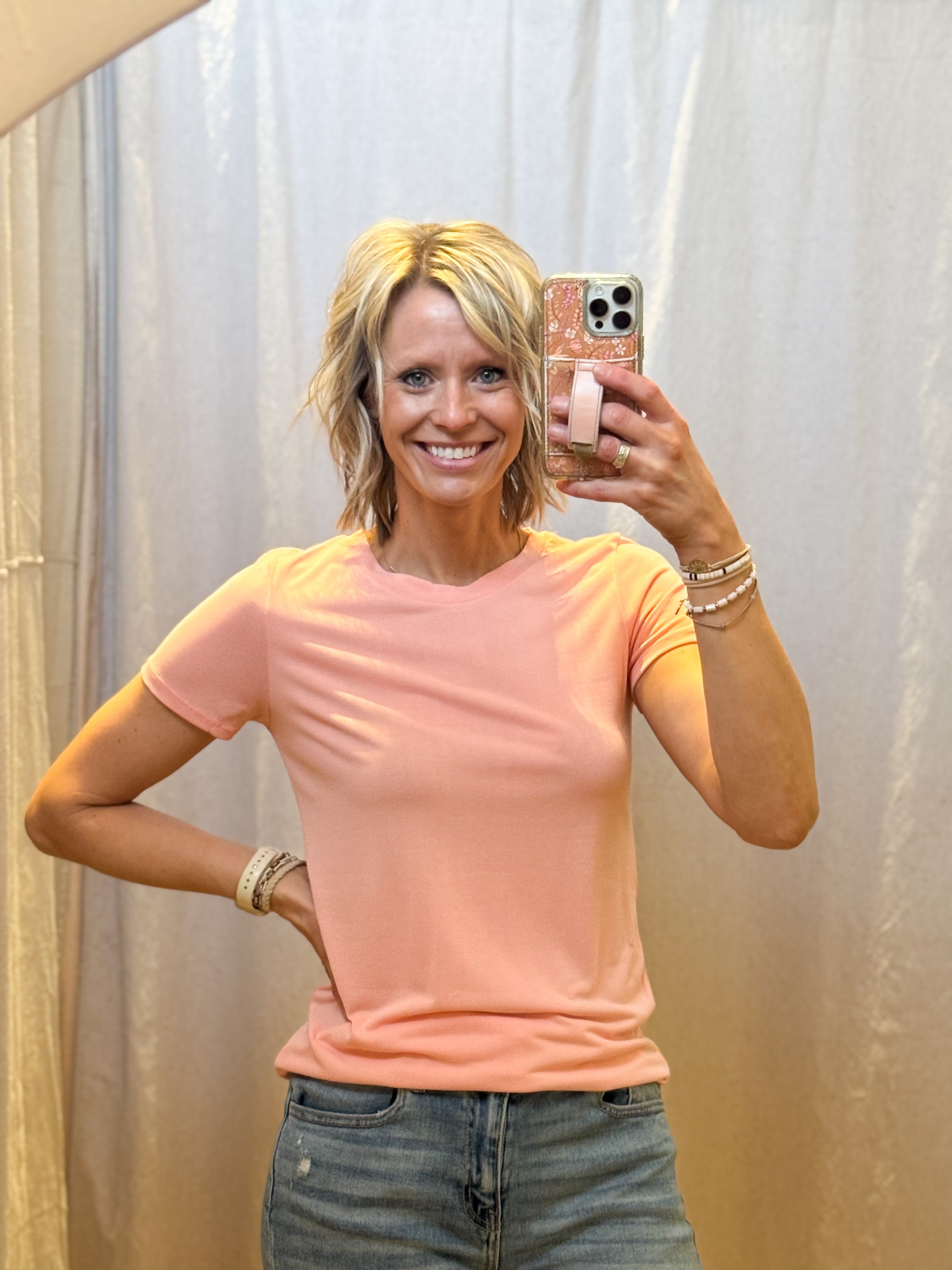 This Crew Neck Short Sleeve Fitted Top comes in 4 colors and offers a longer length for added coverage. Made from super soft fabric, it is comfortable for everyday wear. Enhance your wardrobe with this versatile and cozy top.