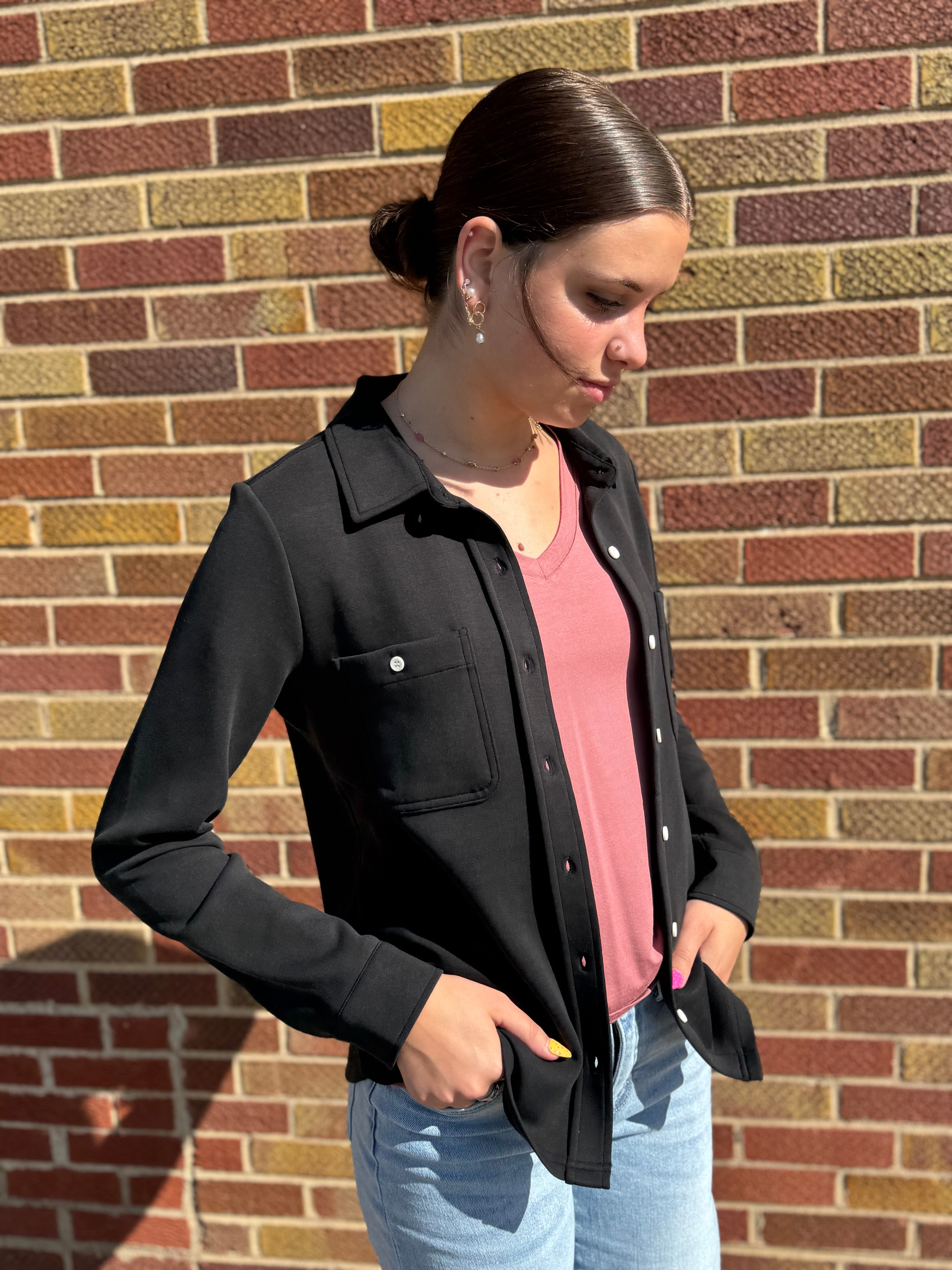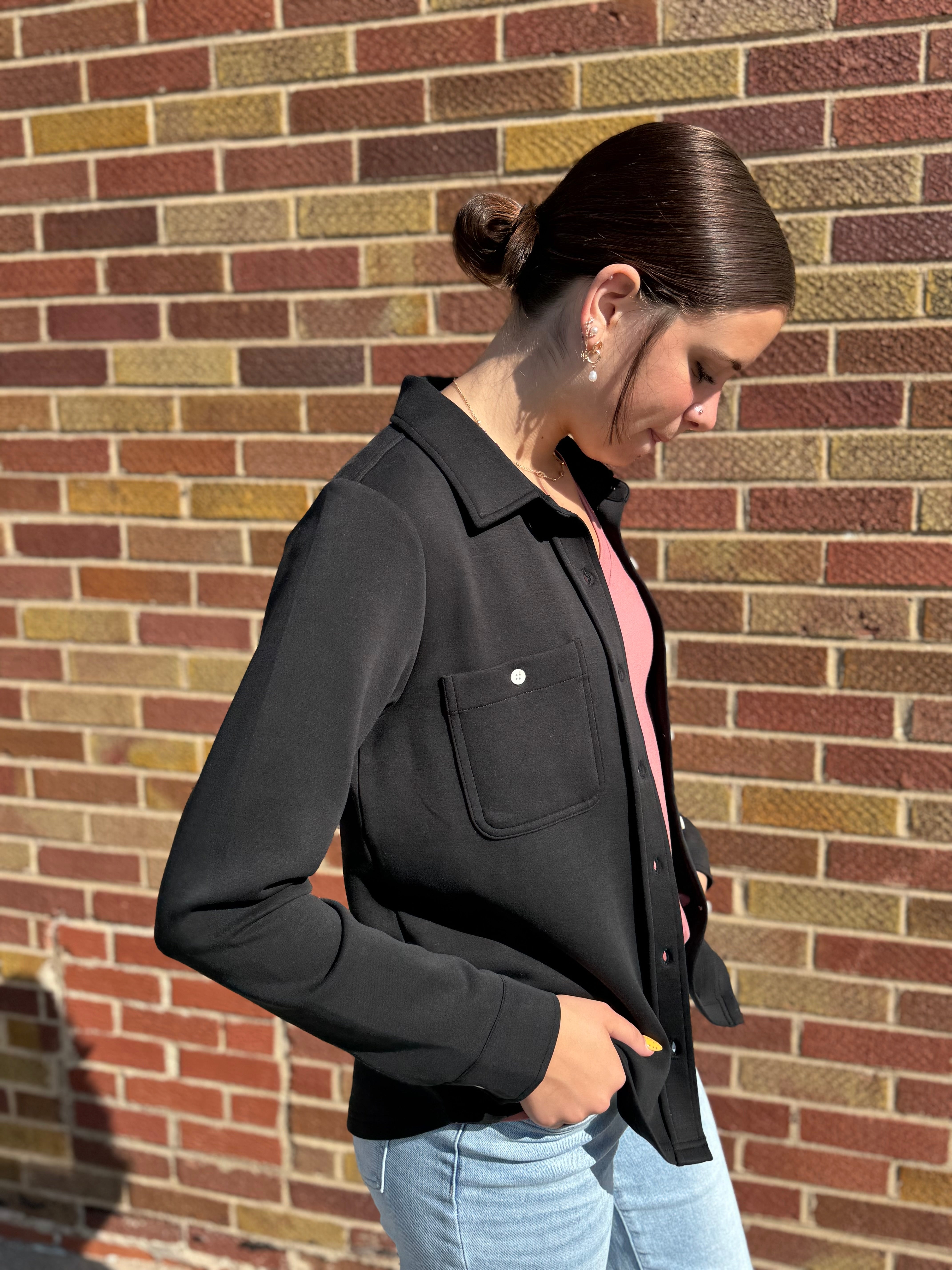 The Mildred Shirt offers a classic button down design with a stylish collar. This garment allows for a versatile and timeless look suitable for both casual and formal occasions.
