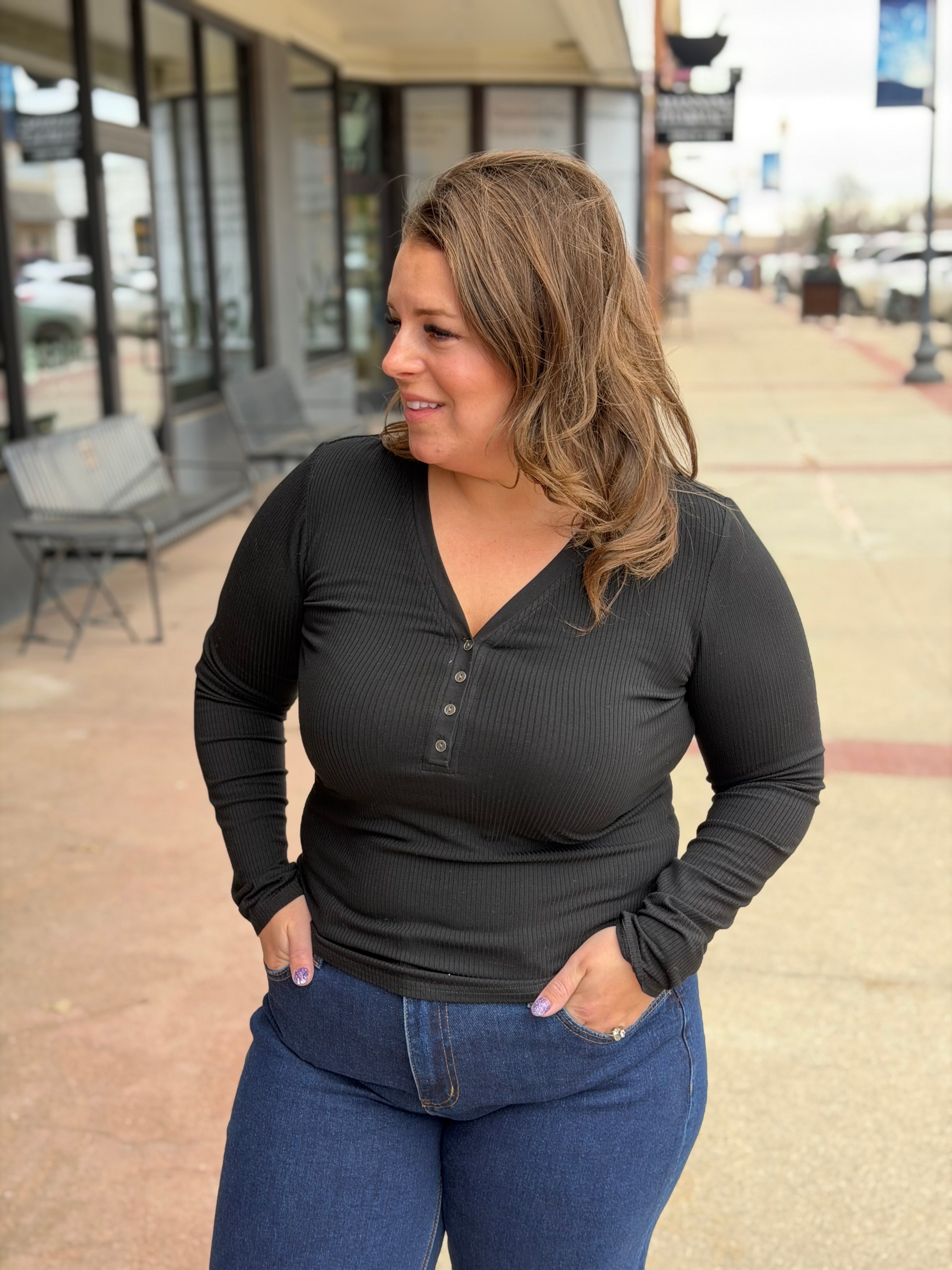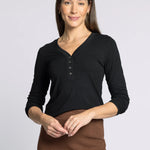 A v-neck henley neckline and so-soft fabrication make this relaxed long sleeve from our essentials collection a truly flattering staple style.