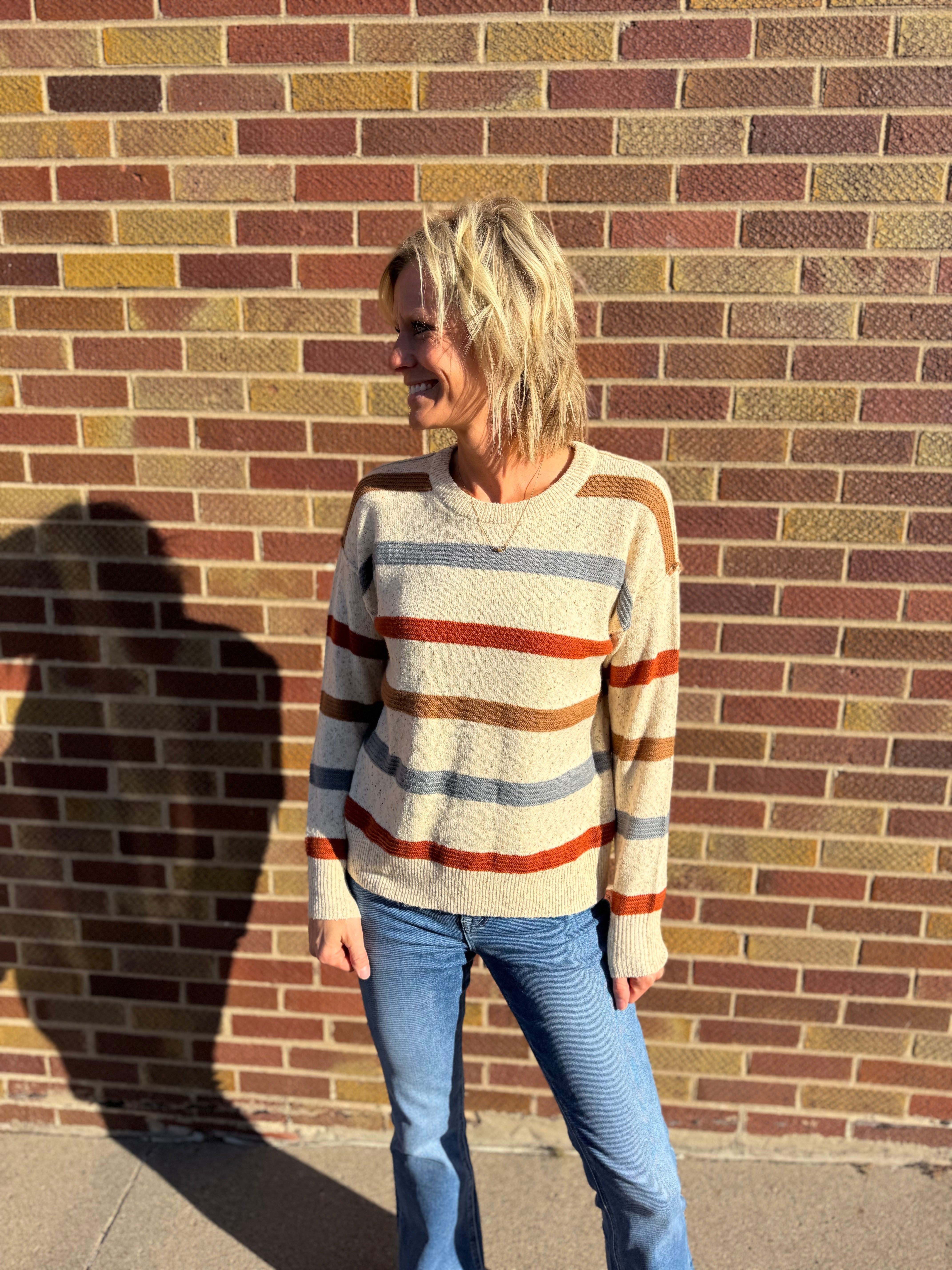 Wrap yourself in cozy fun with the Sprinkled Yarn Striped Pullover Crew. Perfect for casual days or layering up in style, this pullover brings a cheerful vibe to your wardrobe.