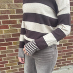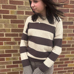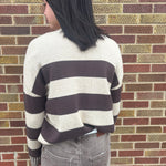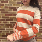 Embrace cozy vibes with this playful striped crewneck sweater, featuring charming tan and pumpkin stripes or rich tan and chocolate hues. Crafted from a soft fabric, it’s perfect for layering on chilly days while adding a splash of fun to your outfit. Stay comfy and stylish all season long!