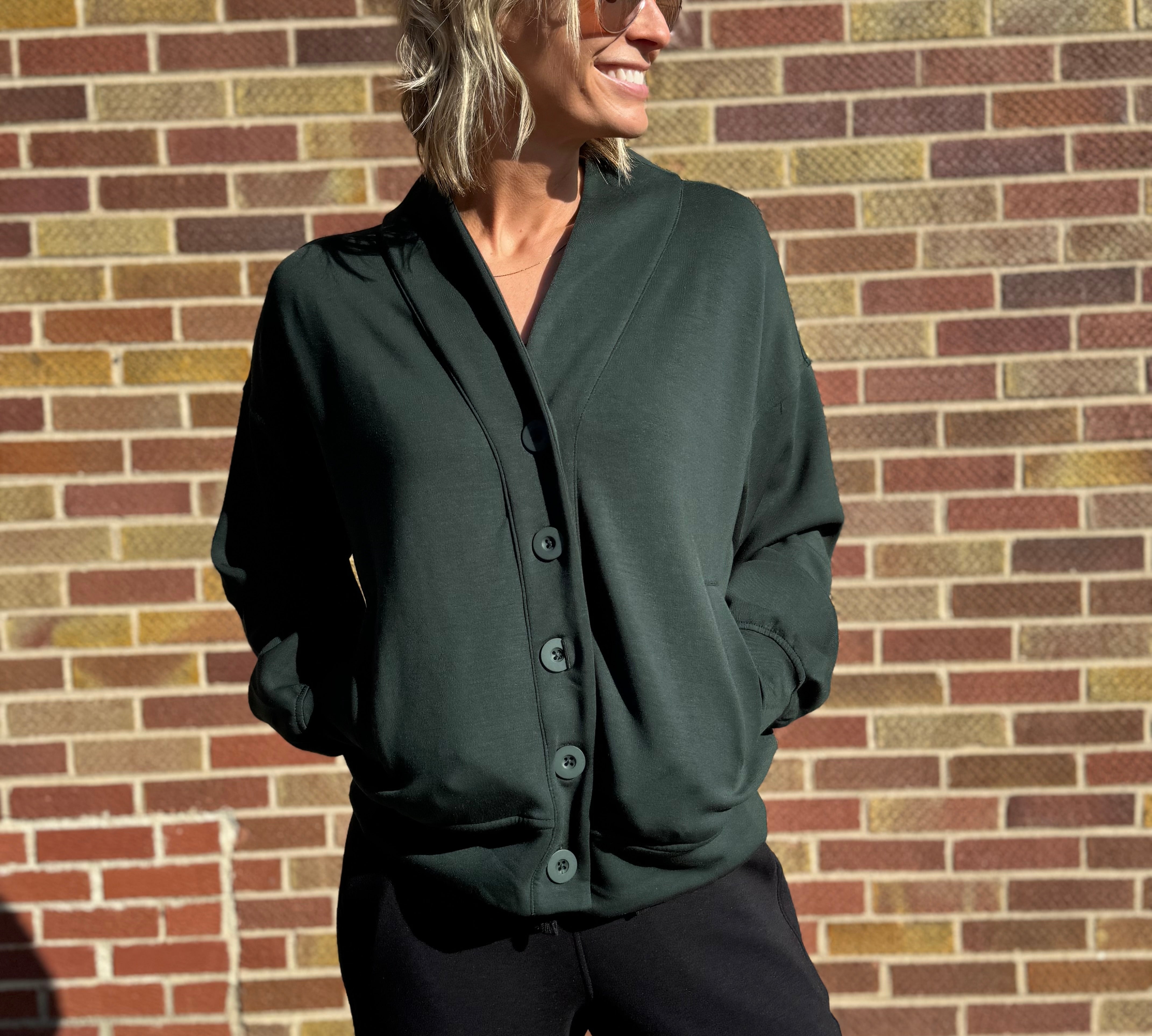 Ribbed Raglan Sleeve Cardigan w/ Pocket