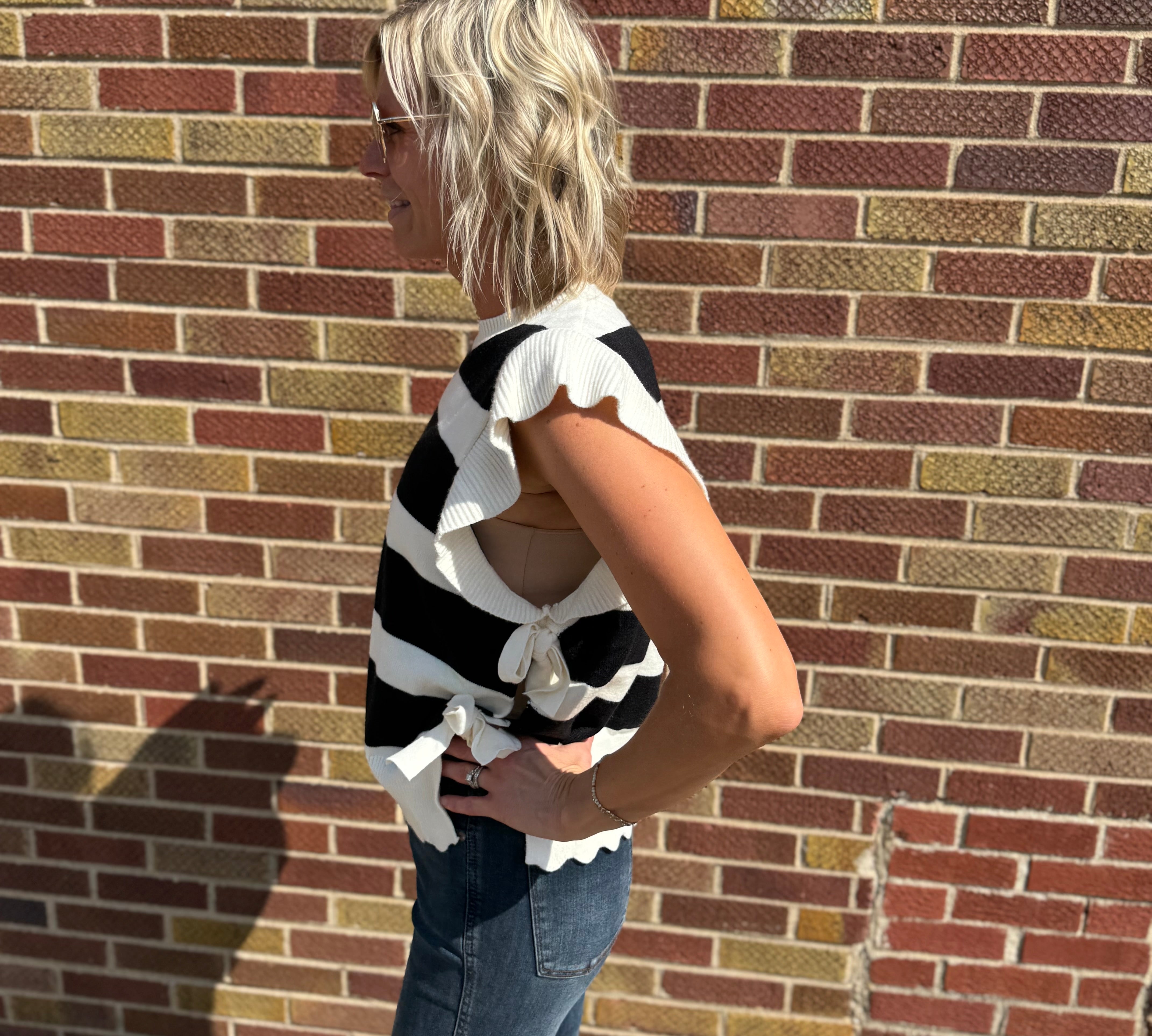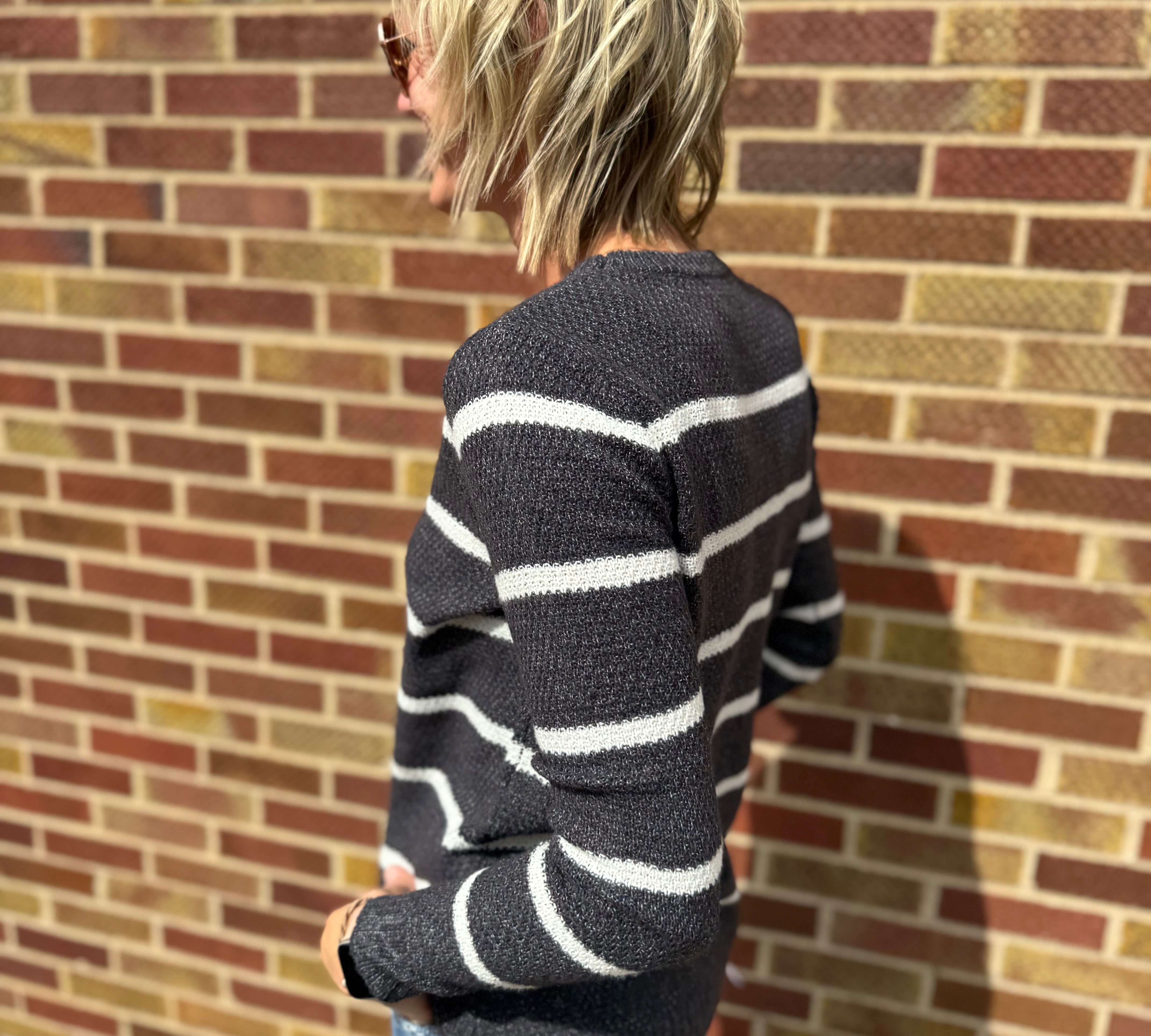 Bold Stripe Sweater Top w/Ruffled Sleeve
