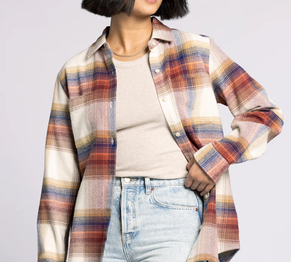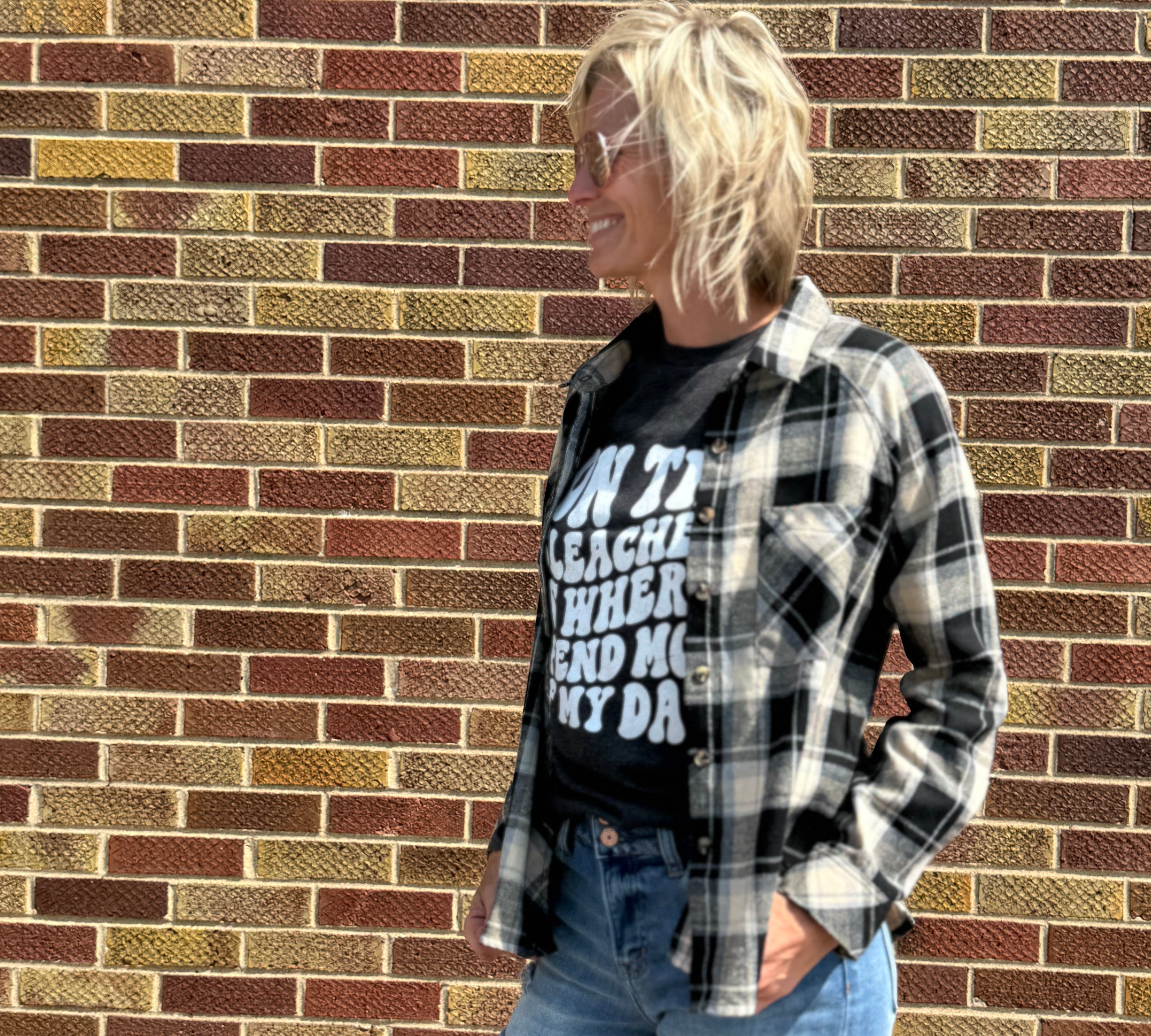 Round Hem Plaid Button Down Shirt w/Front Pocket