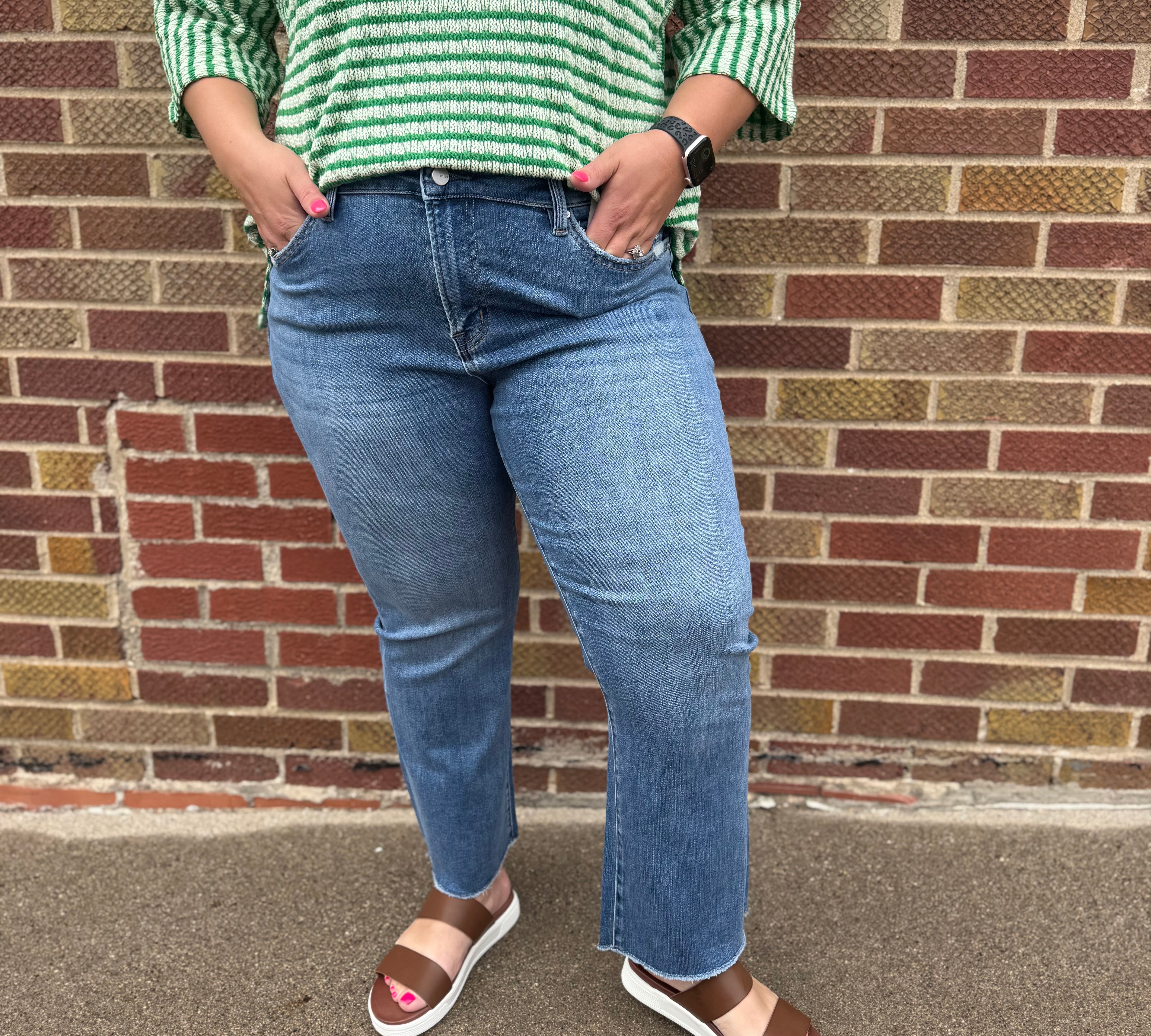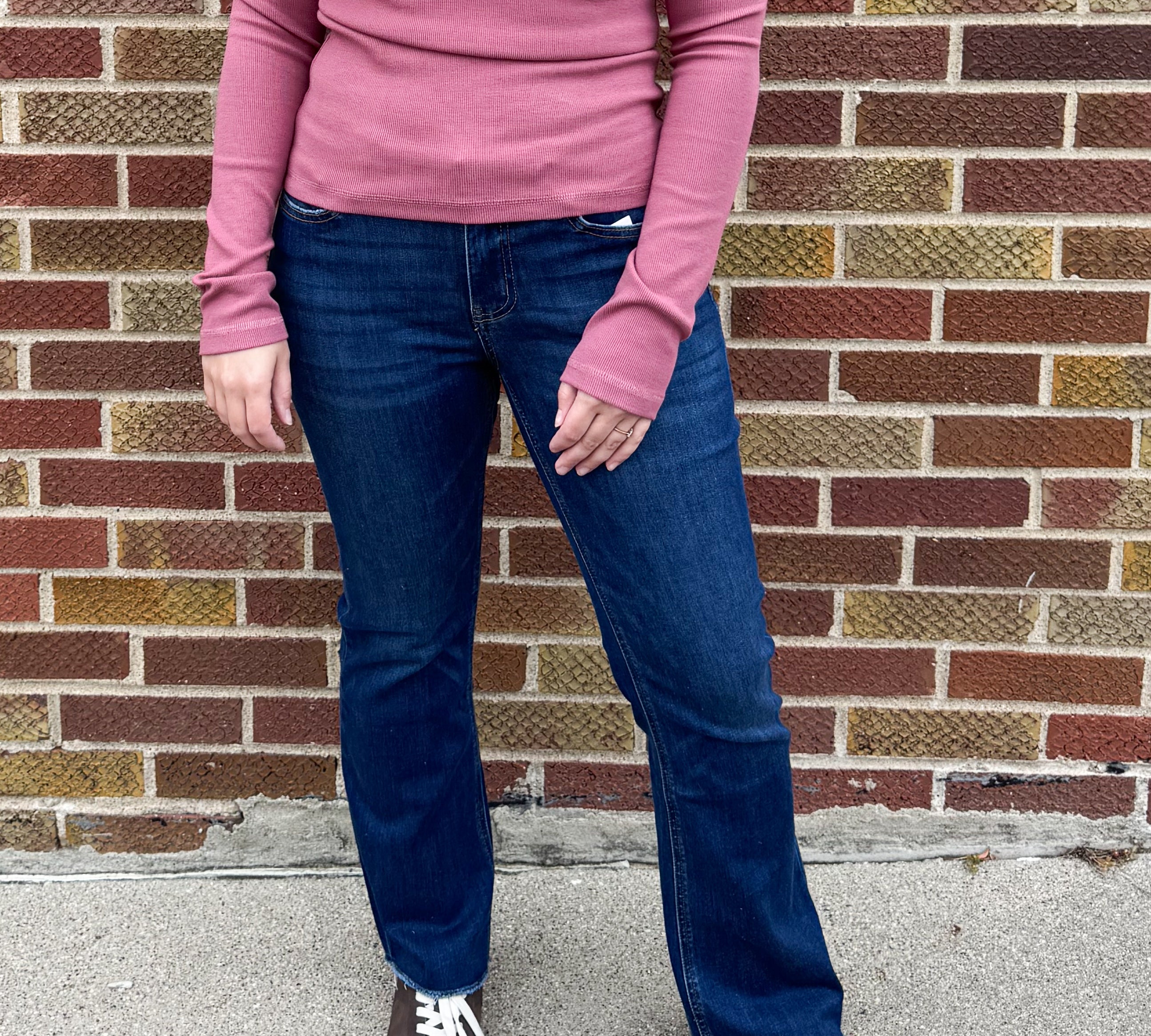 Mid Rise Raw Hem Kick Flare Vervet Jeans