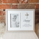 Capture the special moment of your child's baptism with this Baptism Frame. Crafted with a beautiful design and high-quality materials, this frame showcases the significance of being baptized in Christ. Keep the memory alive with this timeless and meaningful piece.