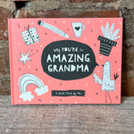 Help a child create a colorful custom gift for Grandma unlike any other. Each page of this whimsical fill-in book offers kids creative ways to express their appreciation and heart. From drawing pictures to circling superlatives, every spread is a chance to share just how amazing Grandma is. When complete, this vibrant keepsake will become a time capsule of a child’s personality and a heartwarming offering of a grandchild’s love.