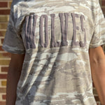This neutral short-sleeve Wolves Natural Camo tee features a large, textured wolf print that adds a fun, tactile twist to classic camo. Soft and breathable, it’s perfect for showing off your wild side while staying comfy and cool wherever your adventures take you. 100% cotton. Machine wash cold with like colors. Tumble try low. Only non chlorine bleach.