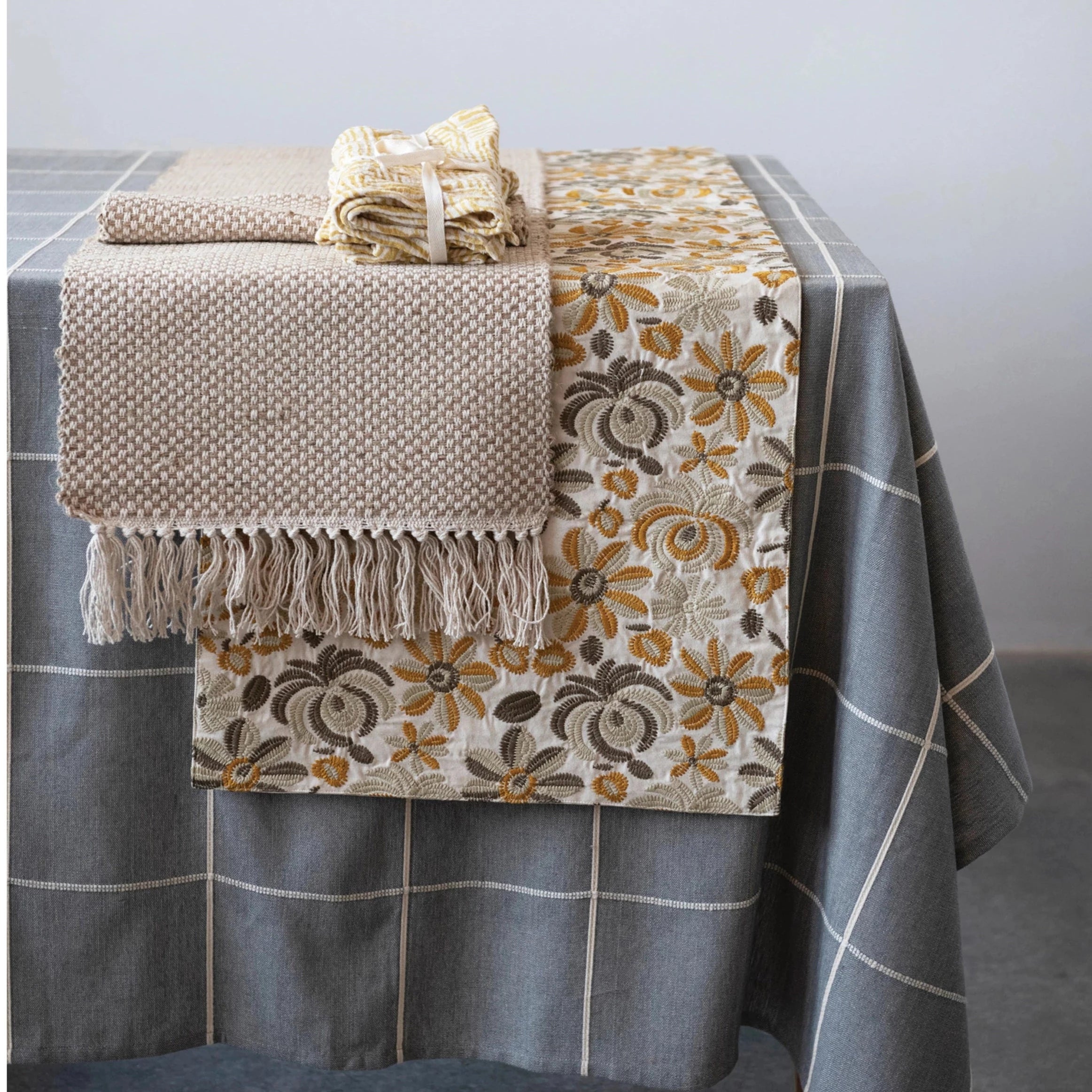 Woven Jute & Cotton Table Runner w/ Fringe 72”
