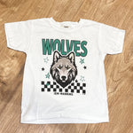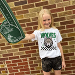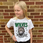 Show off your wolves spirit with our Youth Checkered Wolves Mascot Tee! Featuring a simple design with a Wolf and checkered design, this spirited tee is perfect for sporting events or casual wear.