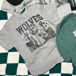 This Youth Letterman Wolves Graphic Tee combines a cool grey base with bold black graphics for a stylish, sporty look. Comfortable and playful, it’s perfect for young fans who want to show team spirit with a fun, modern twist.