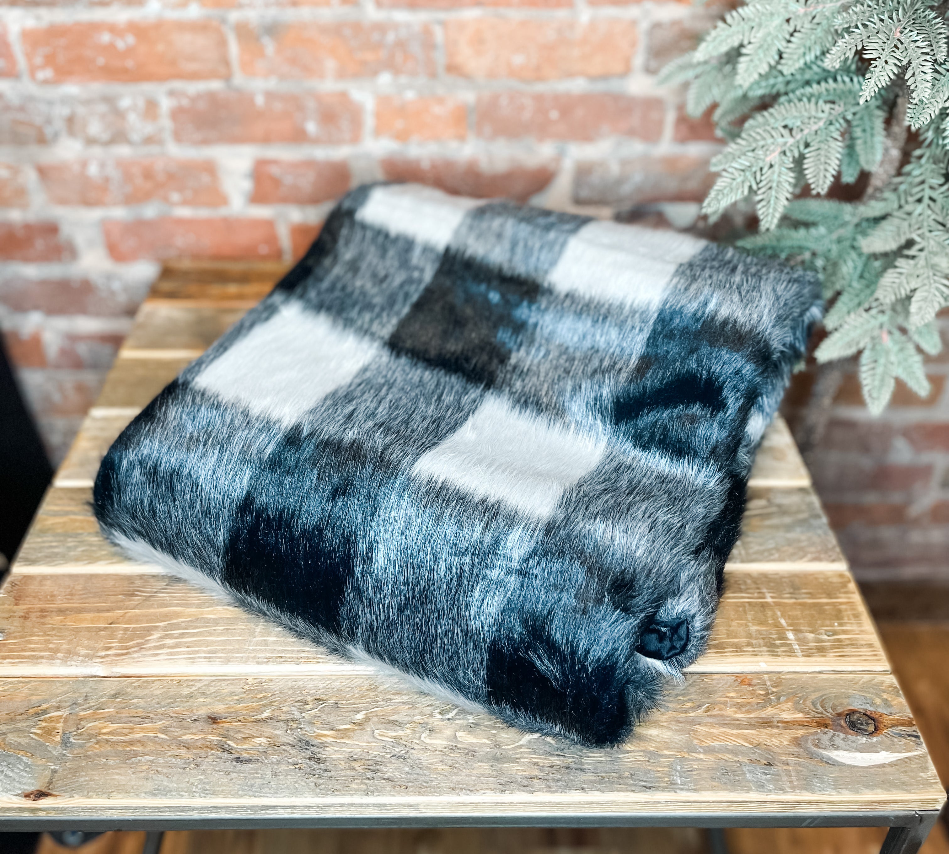 Black/Grey Plaid Fur Plaid Blanket 60”