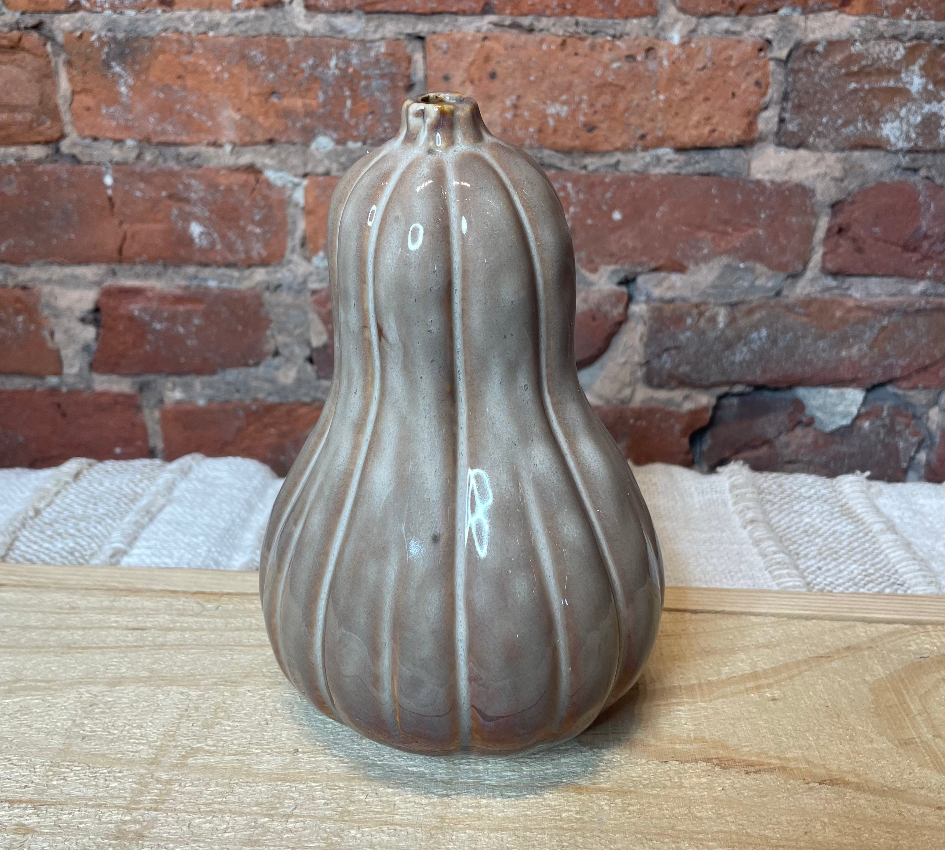 Brown Reactive Glaze Stoneware Gourd Shaped Vase 5x7.5”