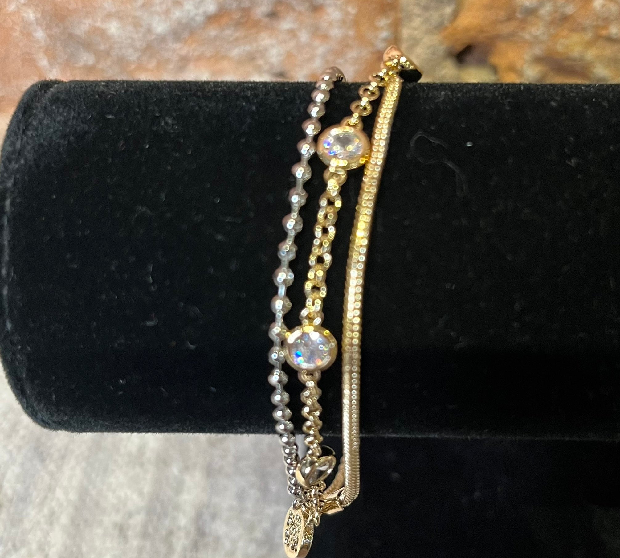 3 Strand Round Snake Chain w/Crystal Station Bracelet