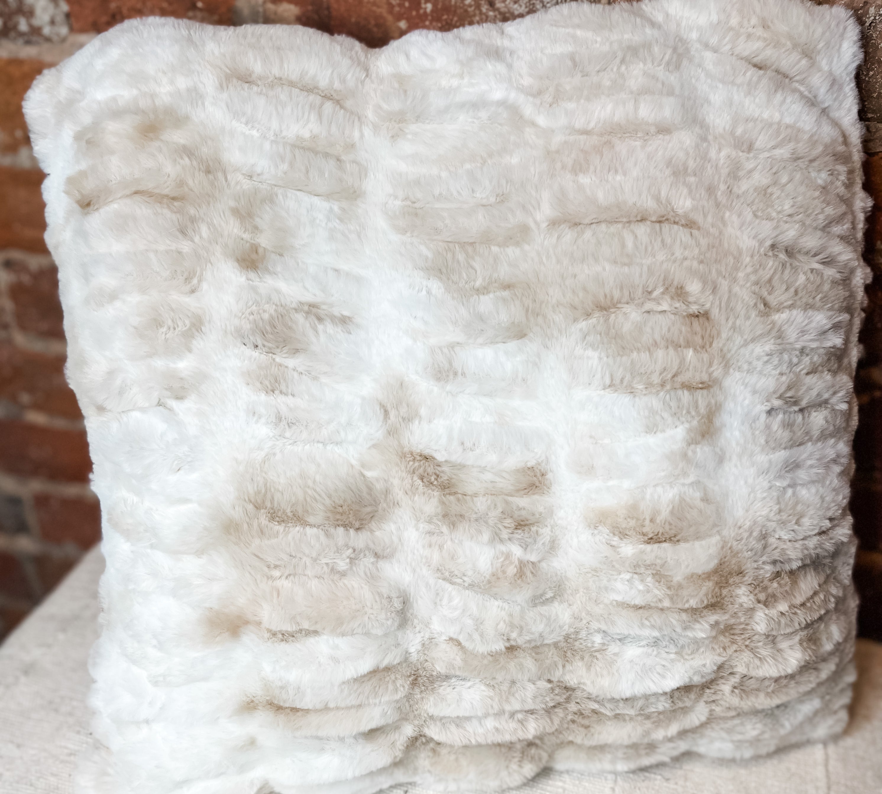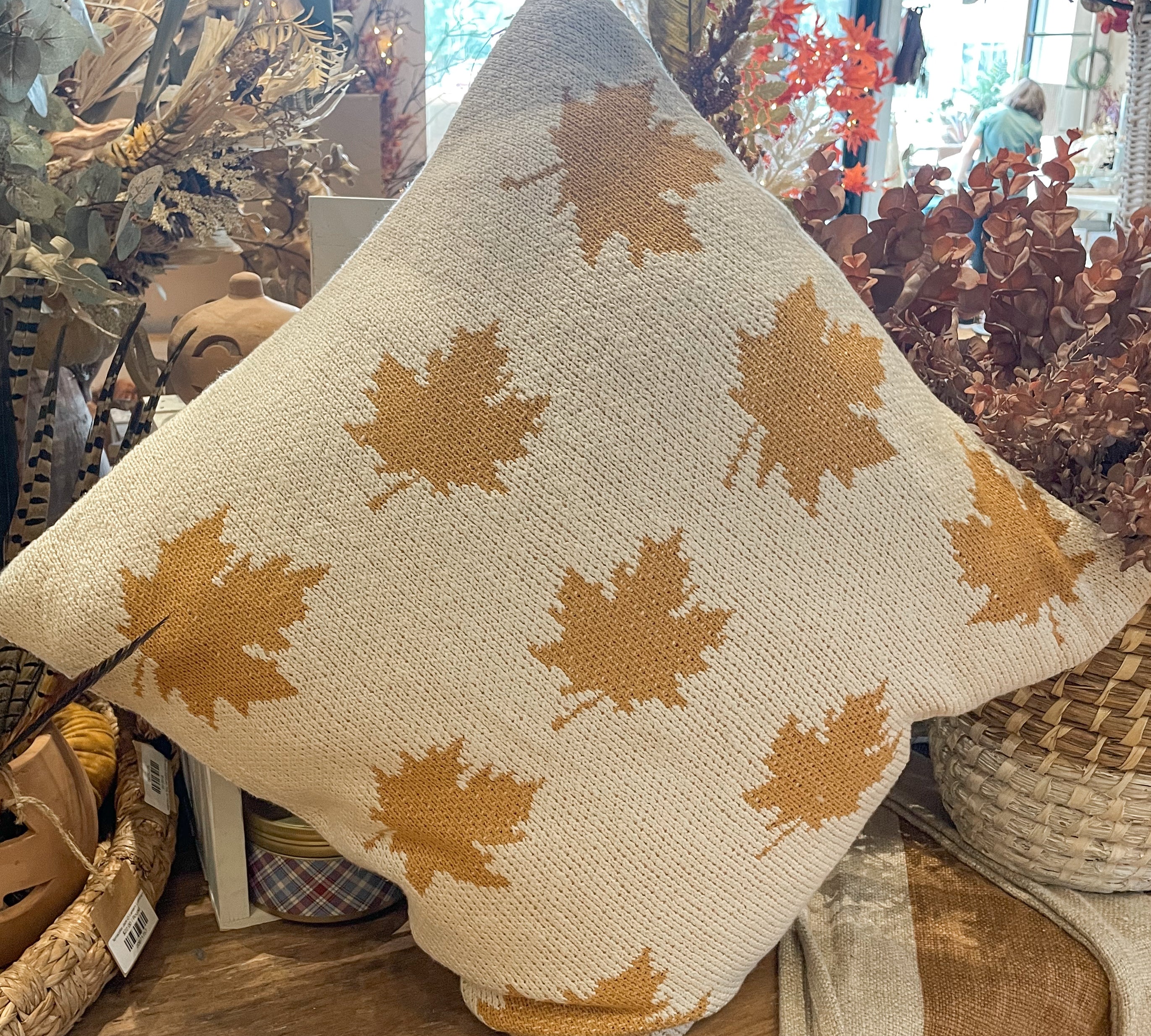 Cream Cotton Knit Pillow w/ Yellow Leaves 20”