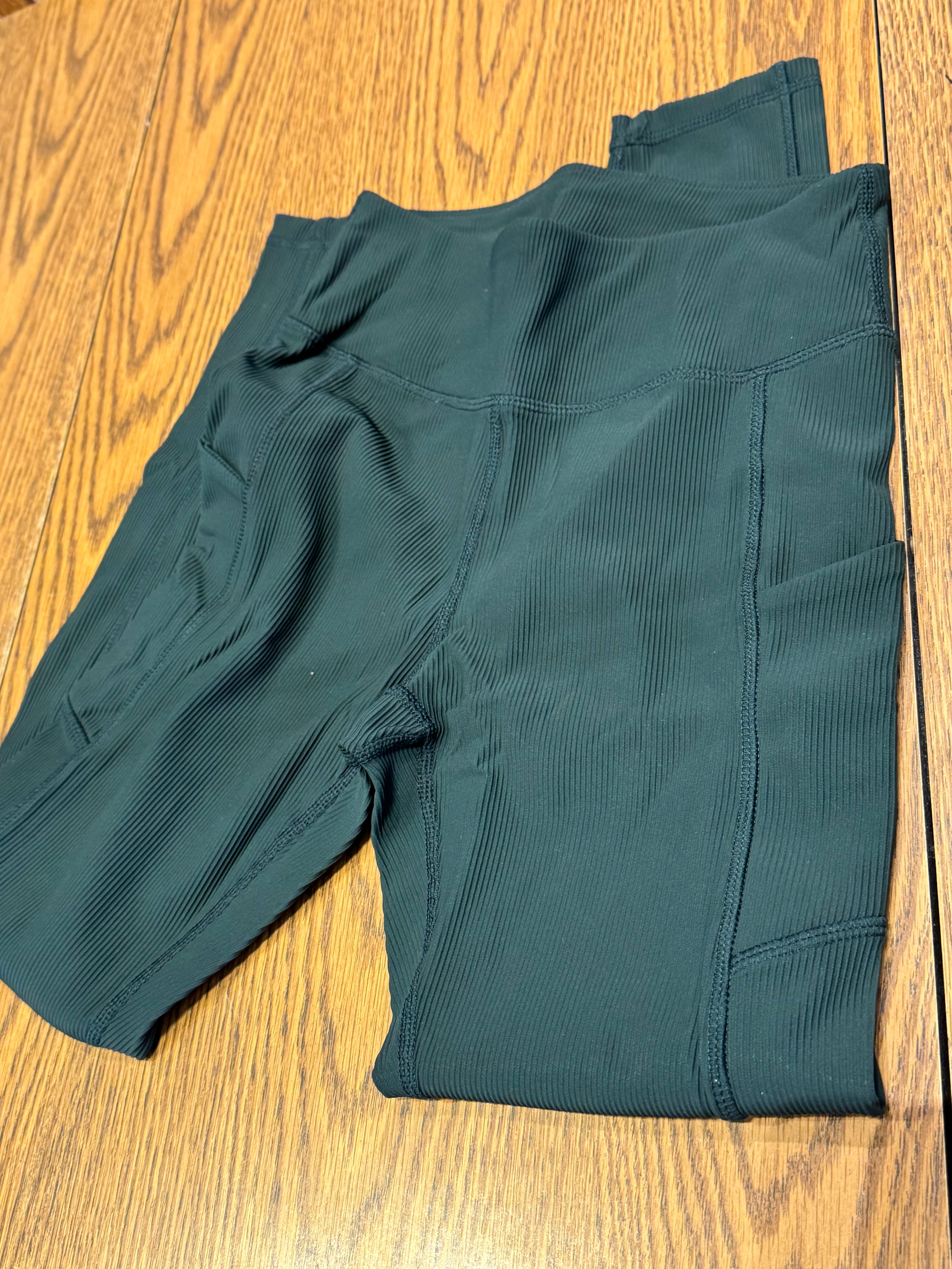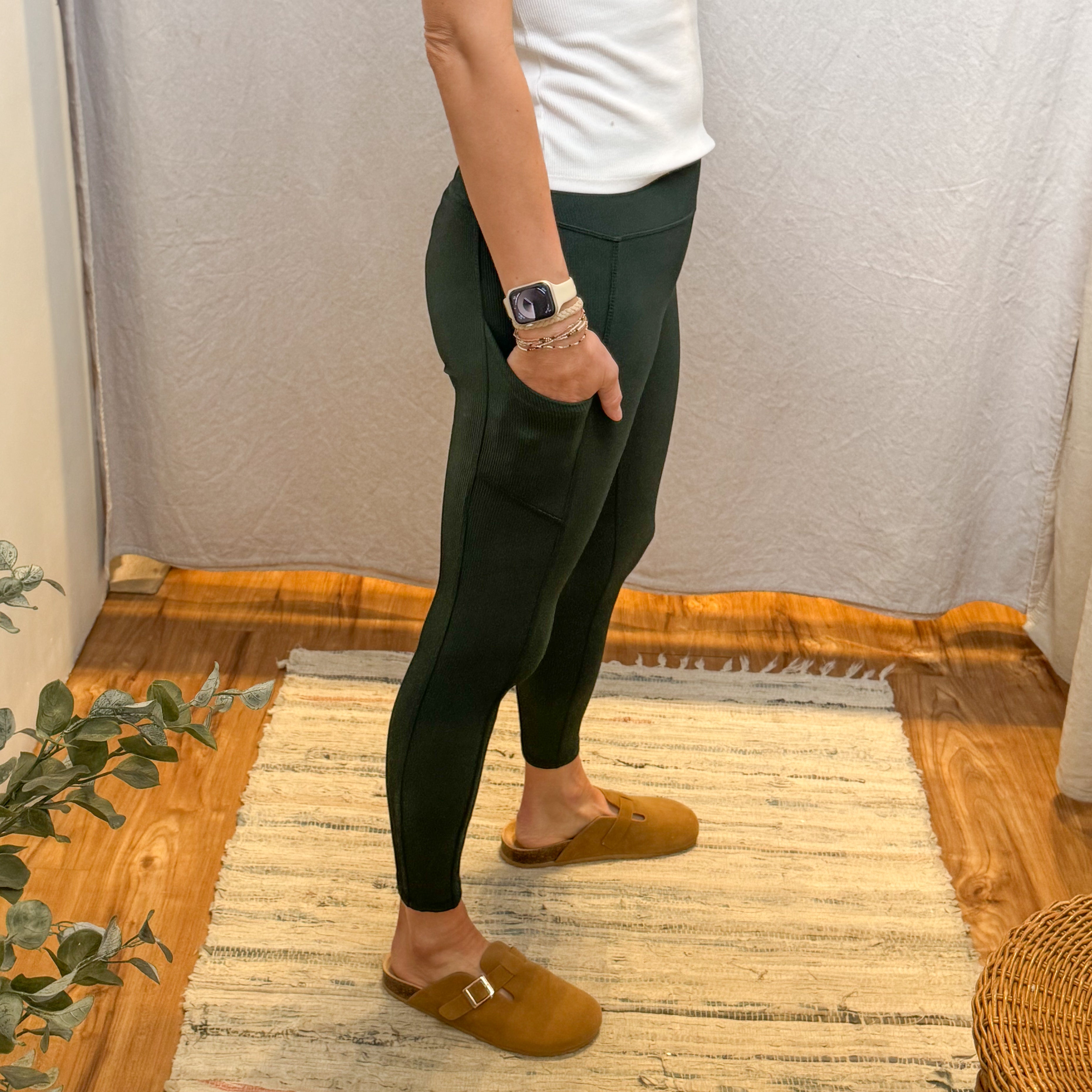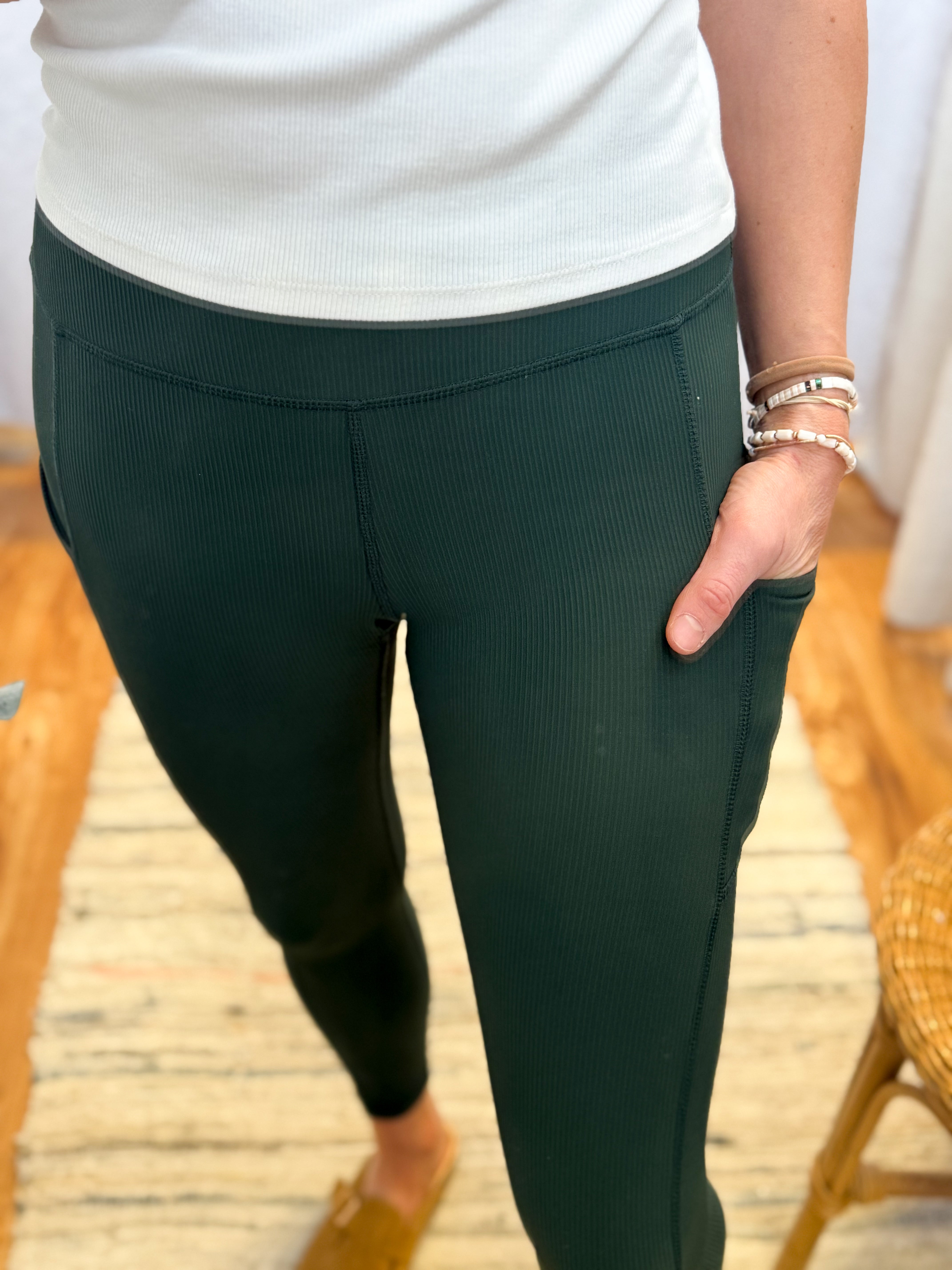 Nylon Ribbed Leggings w/Side Pocket