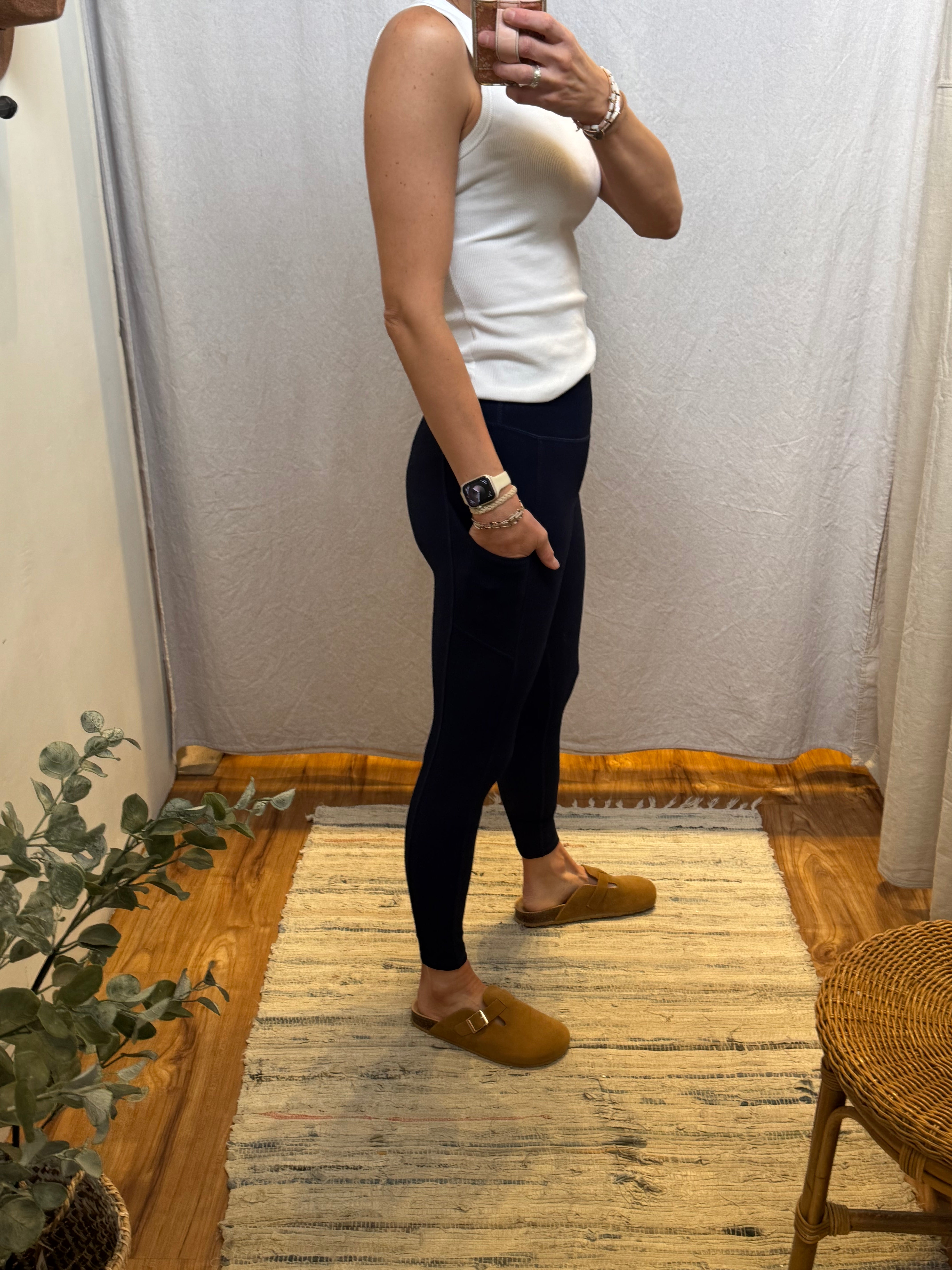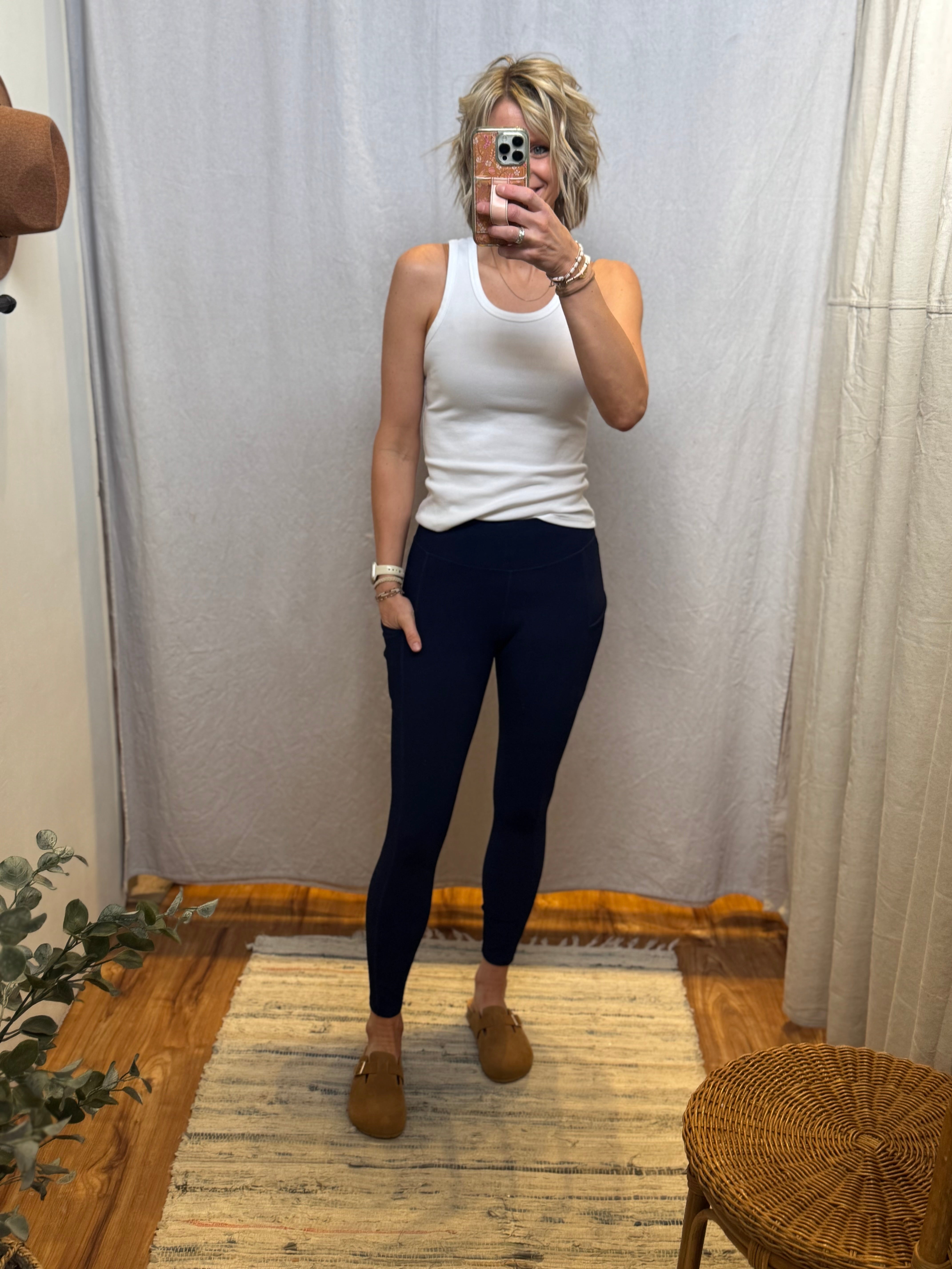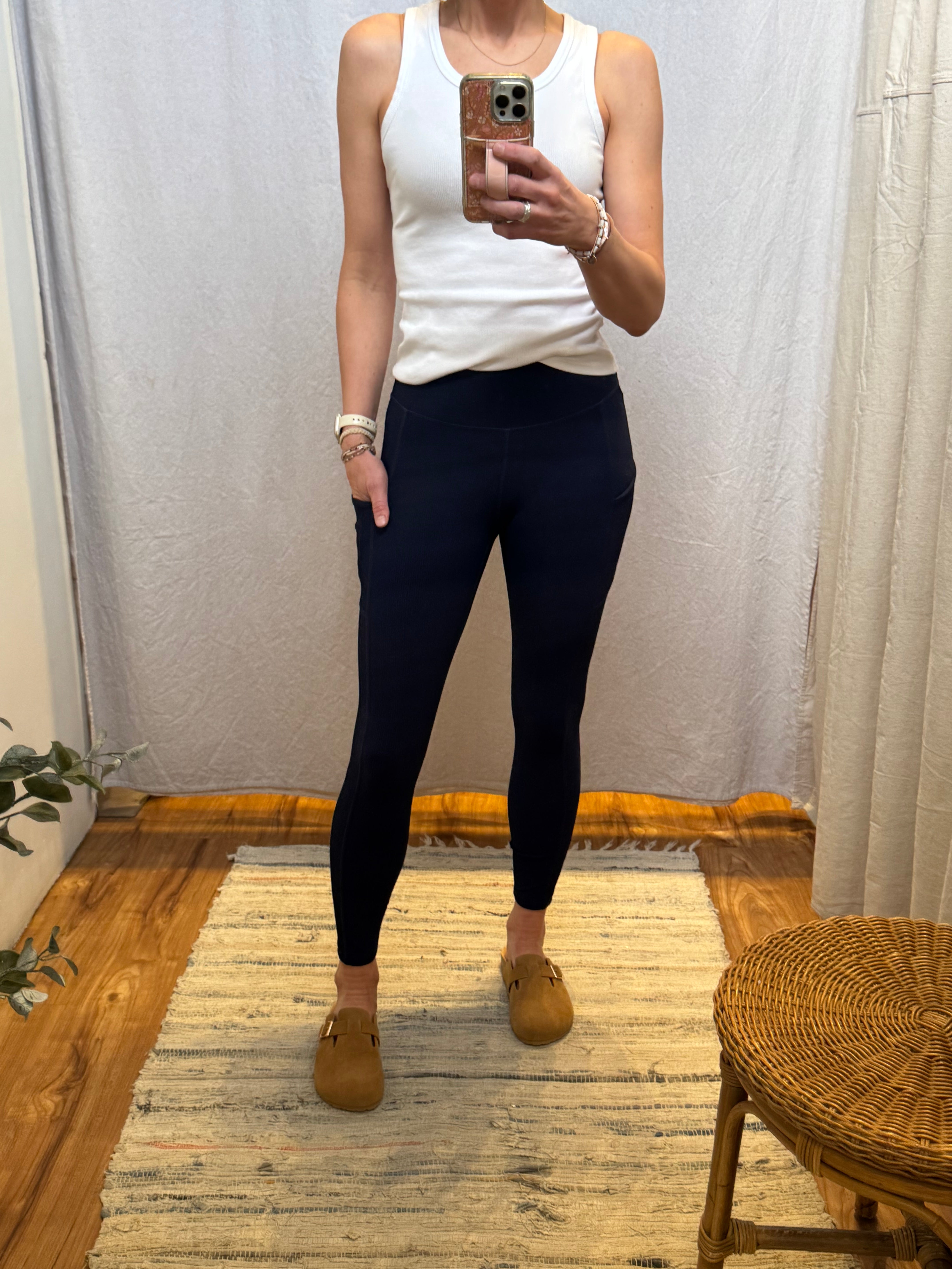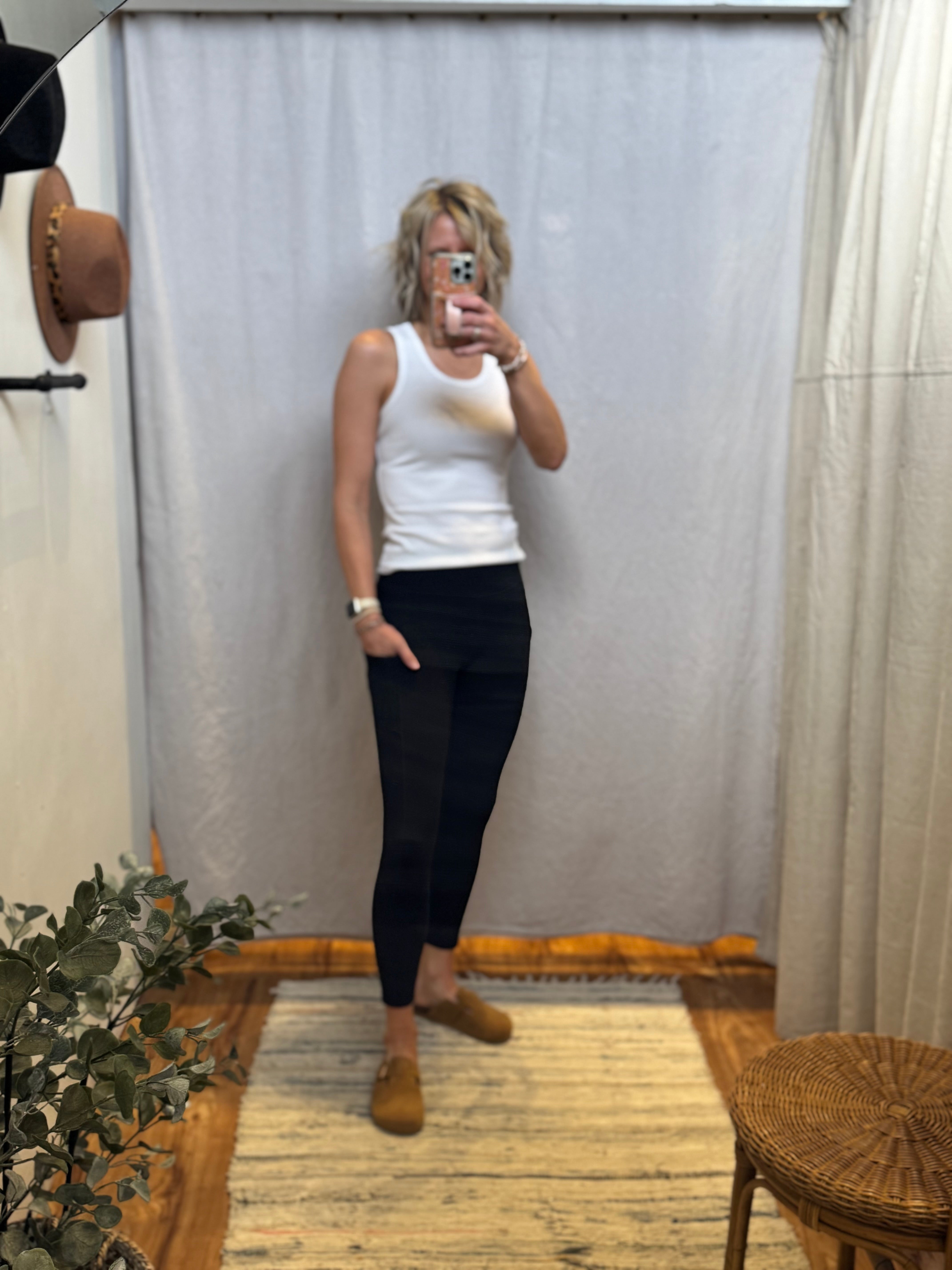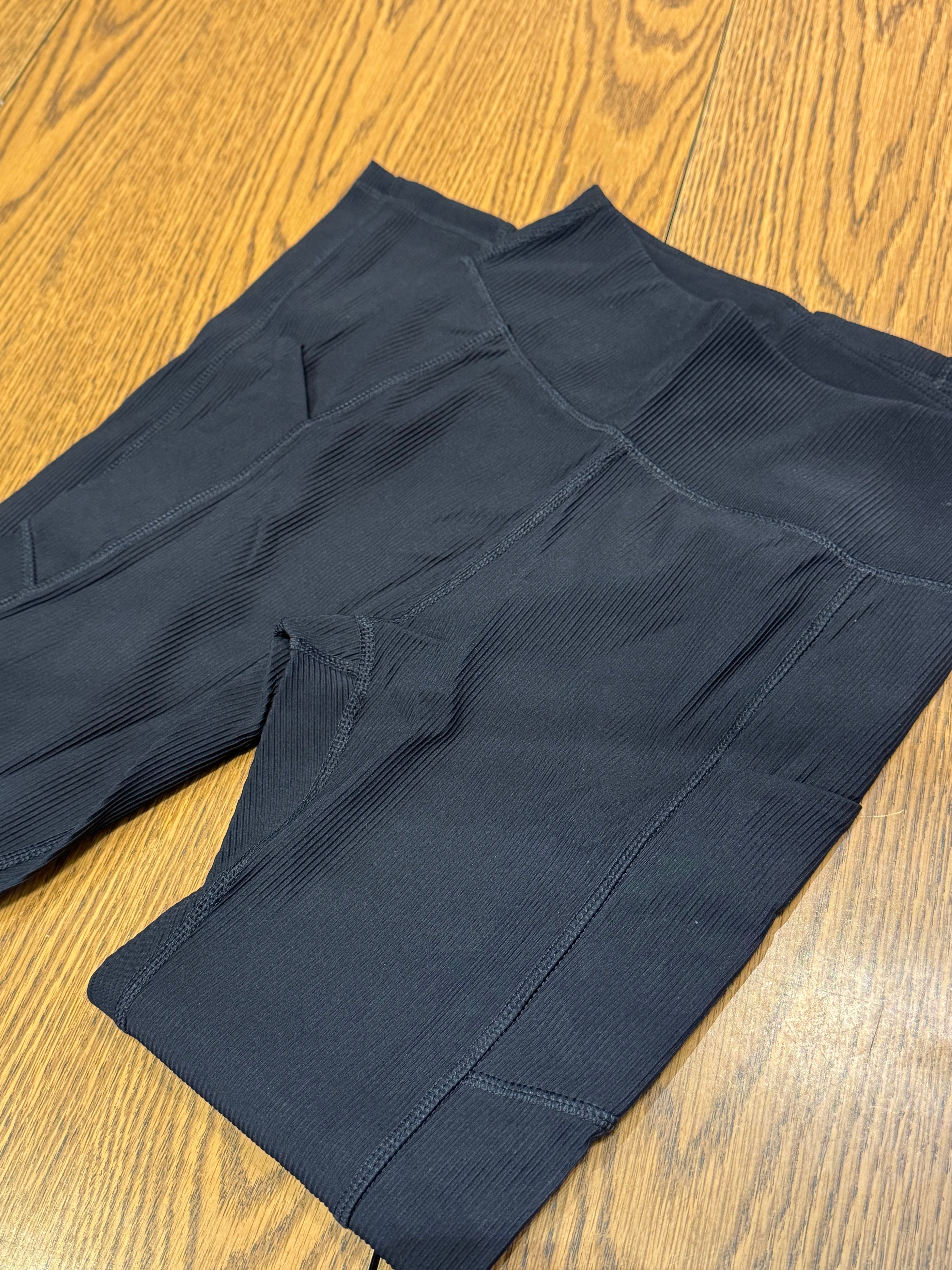 Introducing our Nylon Ribbed Leggings, featuring a wide waistband for added comfort and support. Made with quality nylon material, these leggings offer durability and flexibility for any activity. Convenient side pockets make it easy to store small essentials. Experience ultimate performance and style with our leggings.