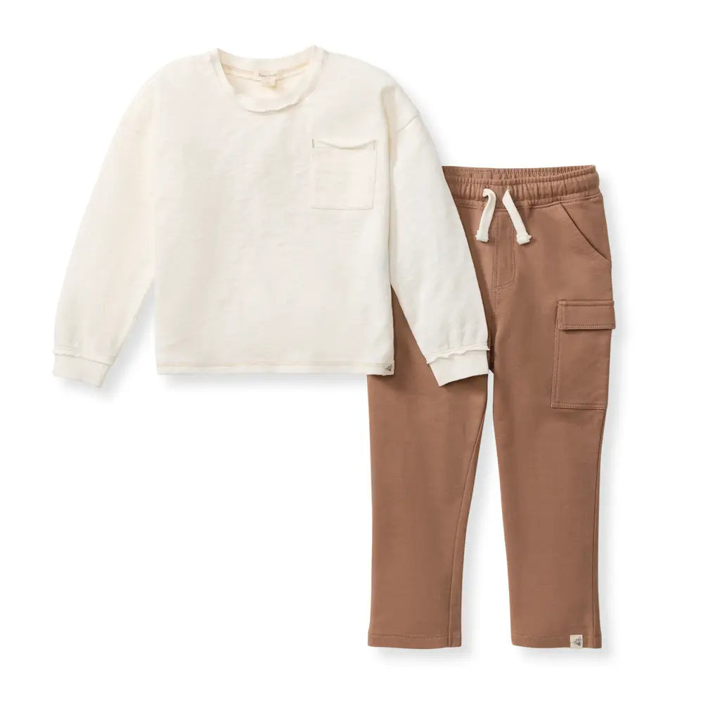 Effortless cool in this drop shoulder long sleeve shirt and pant set!
