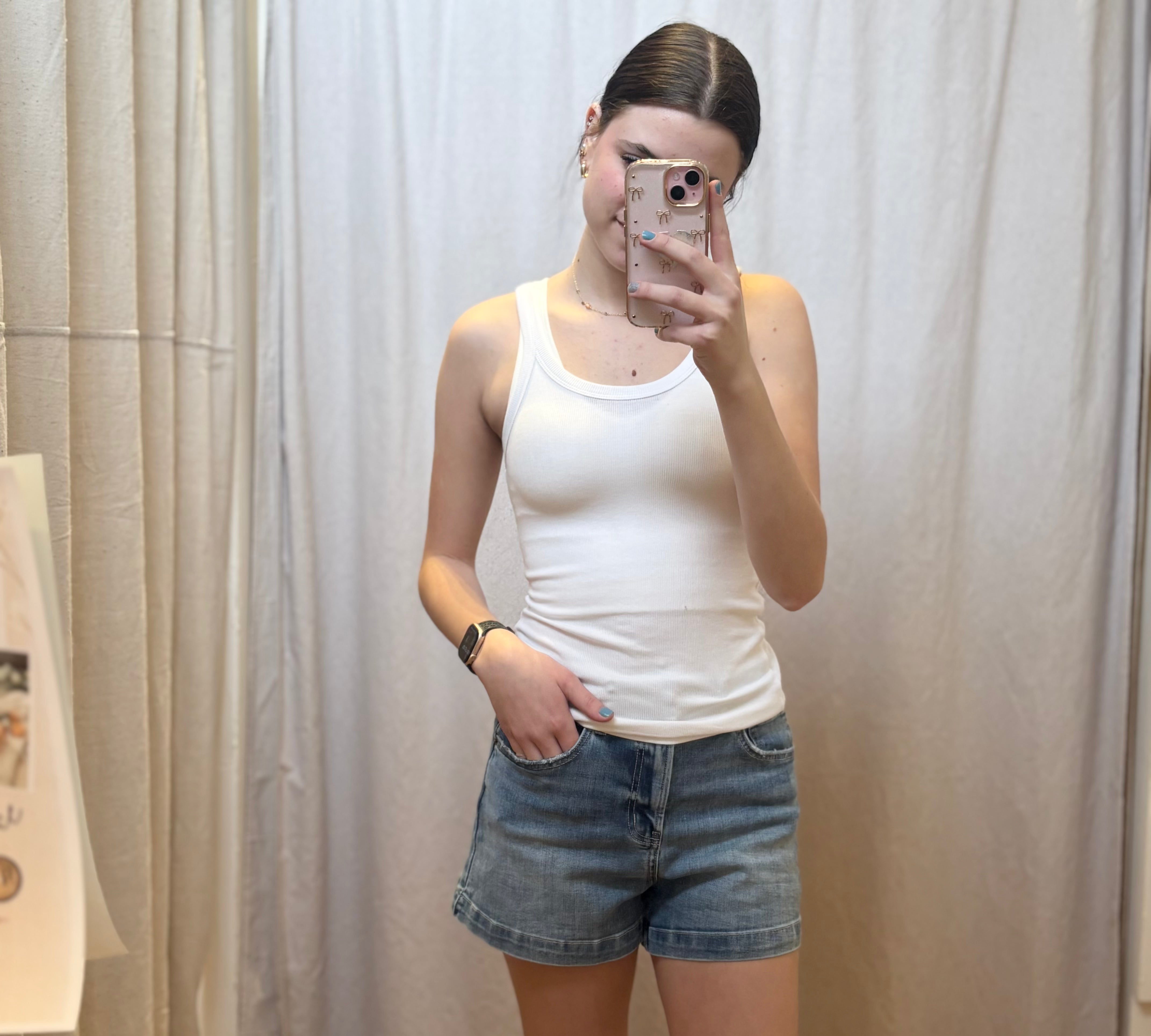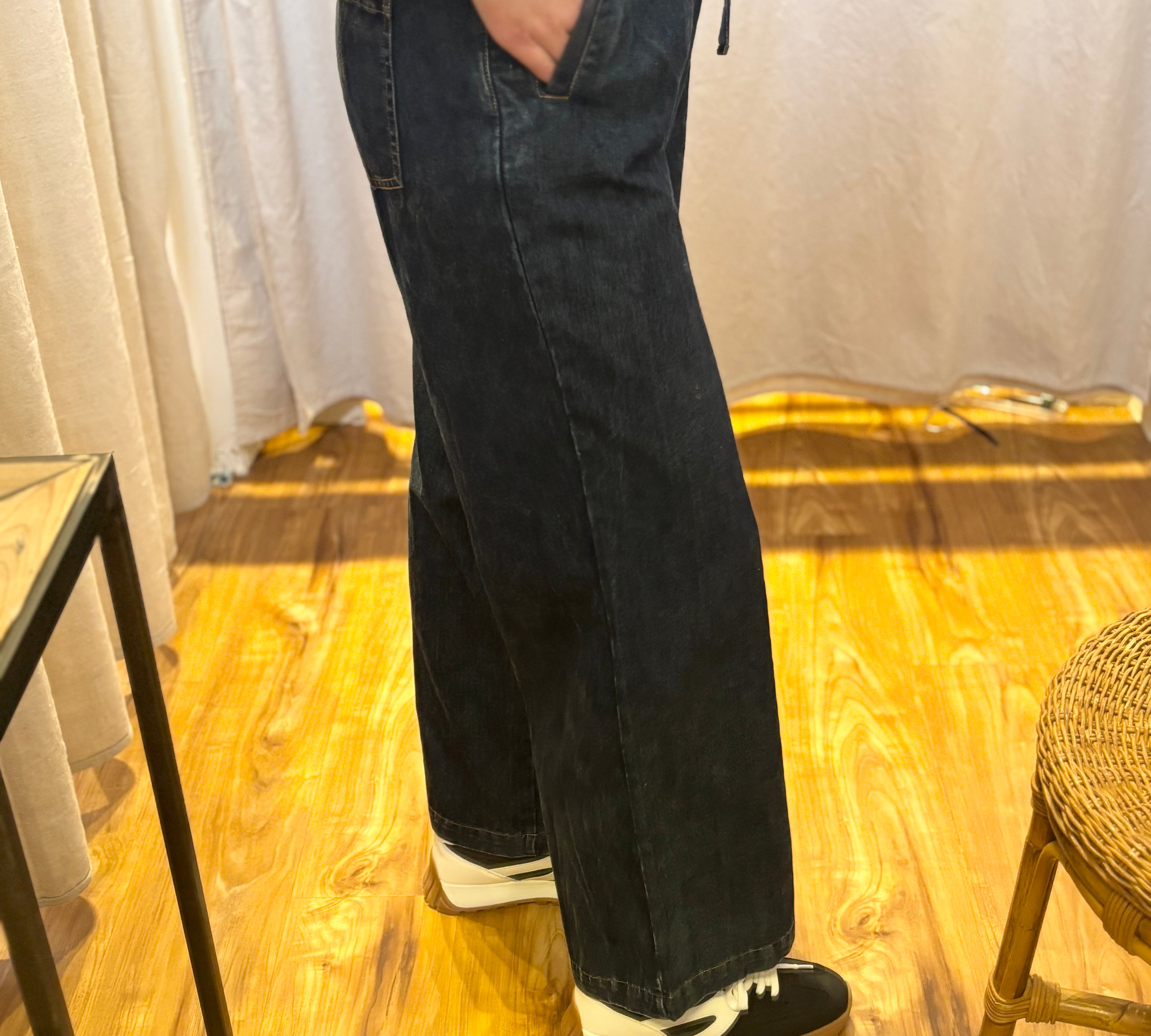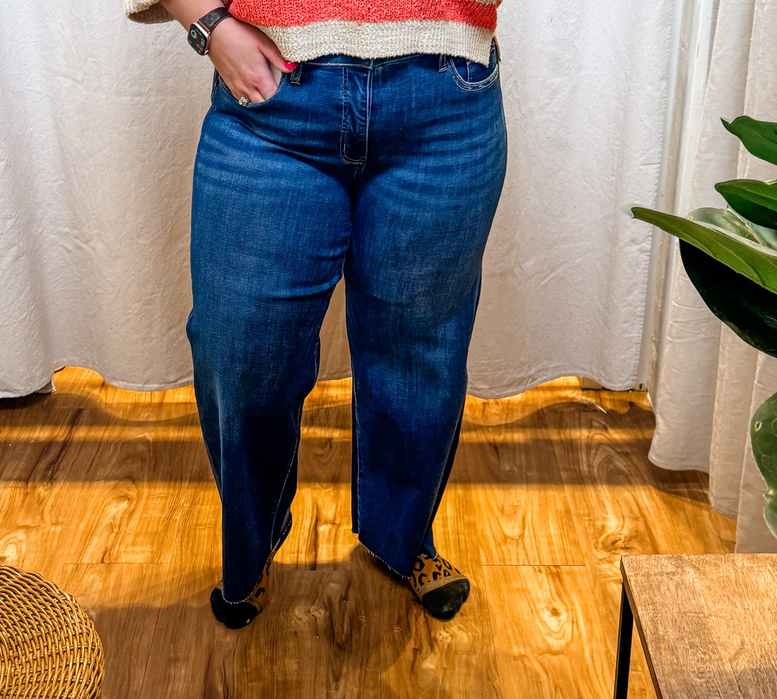 Tummy Control Mid Rise Dark Wash Wide Leg Jeans