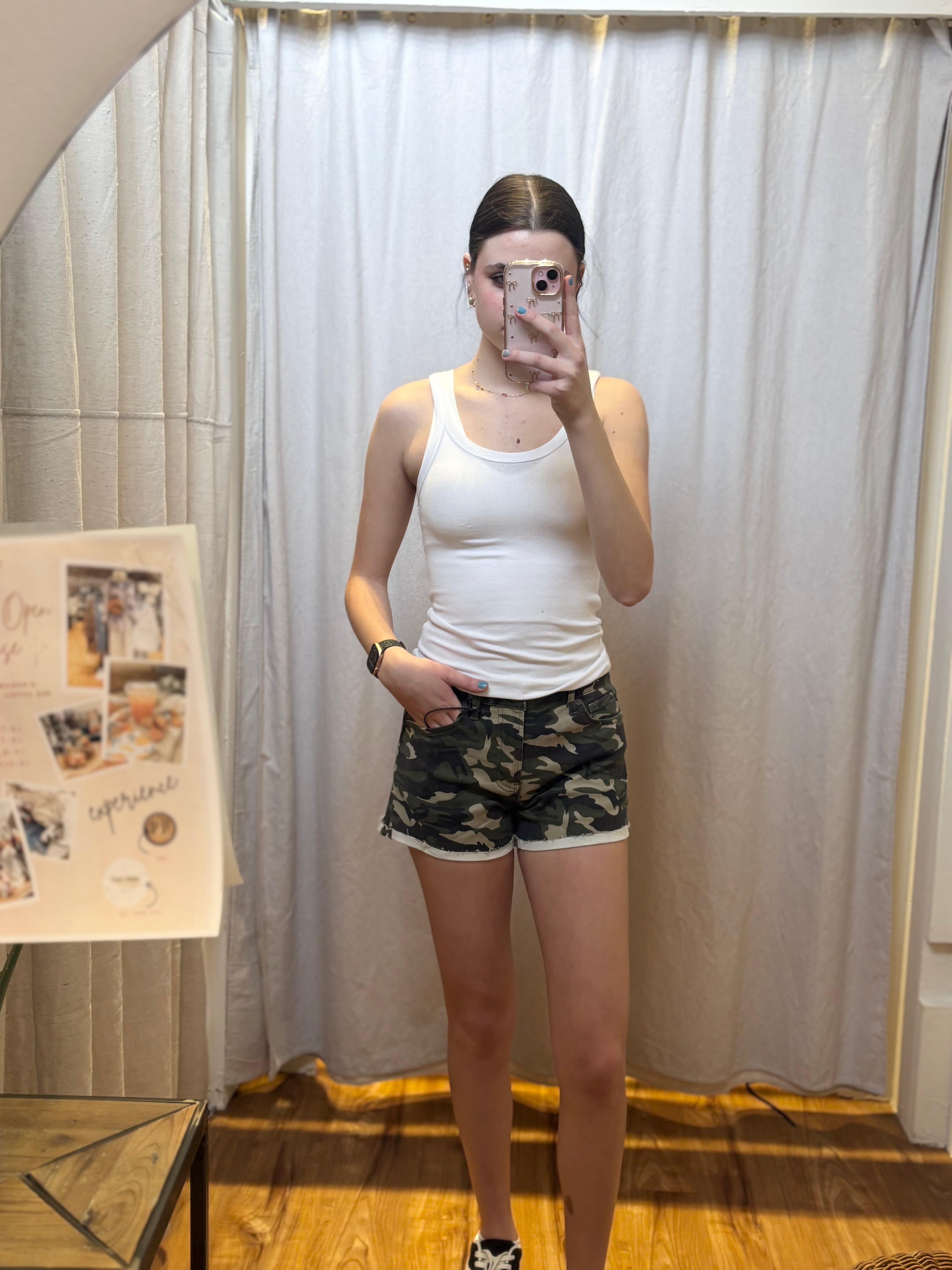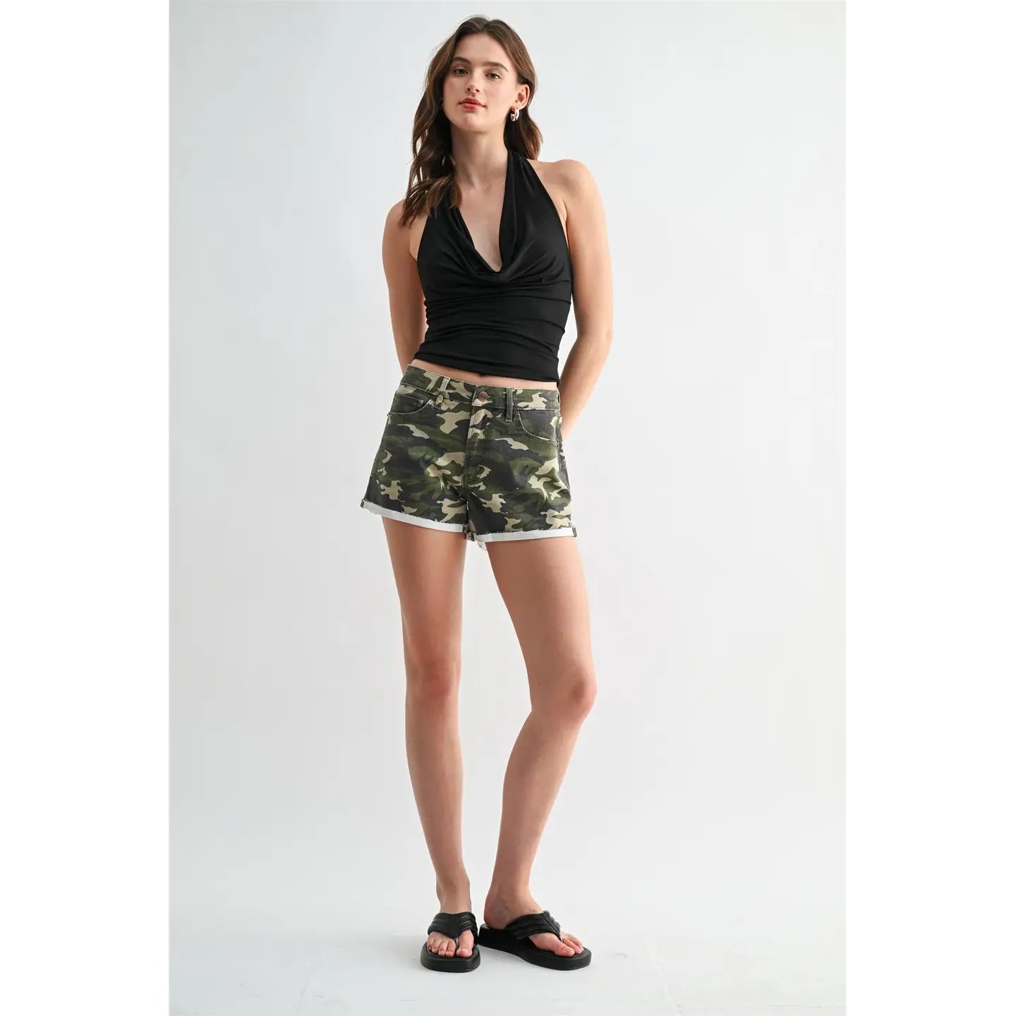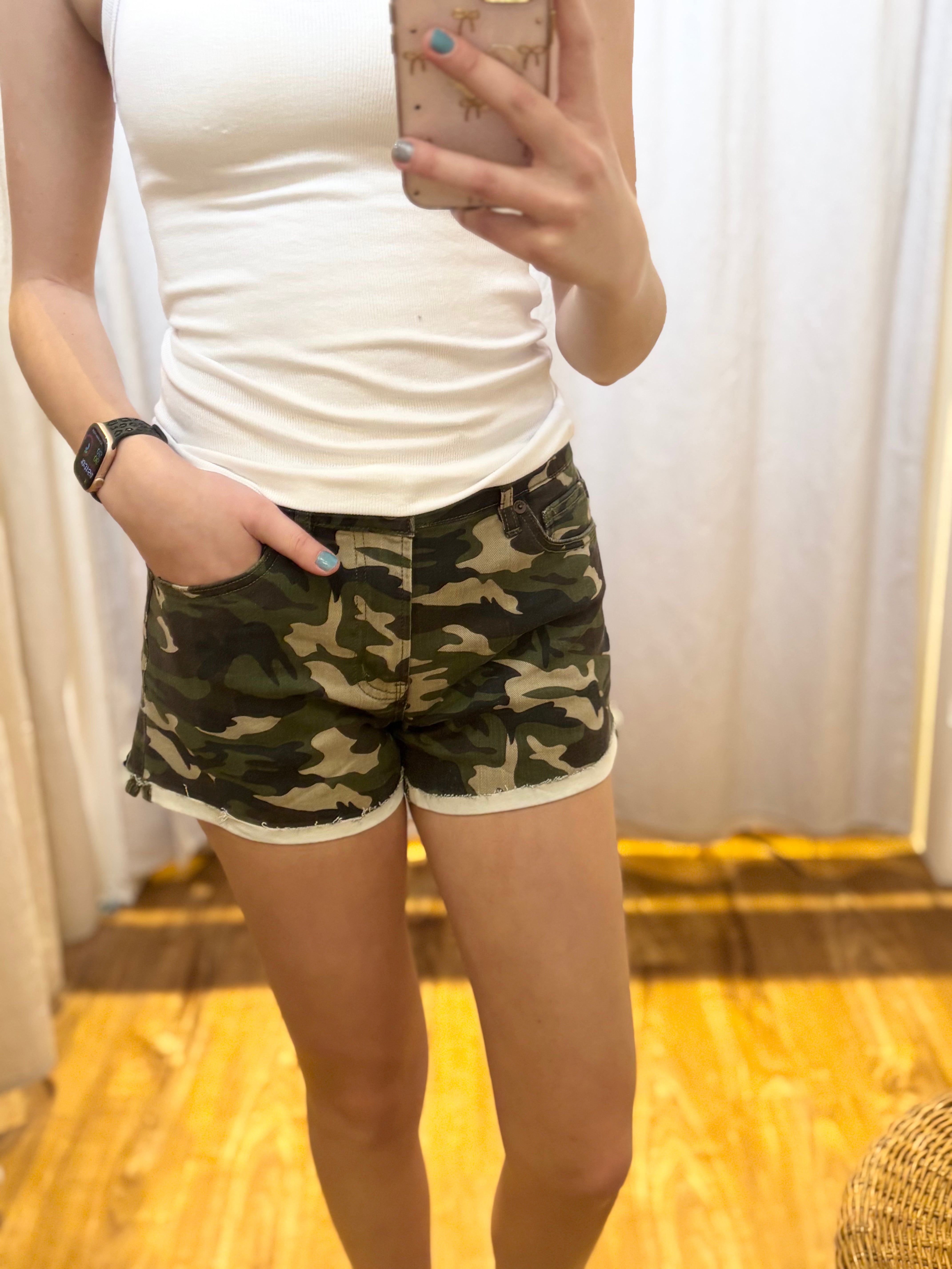 High rise camouflage shorts