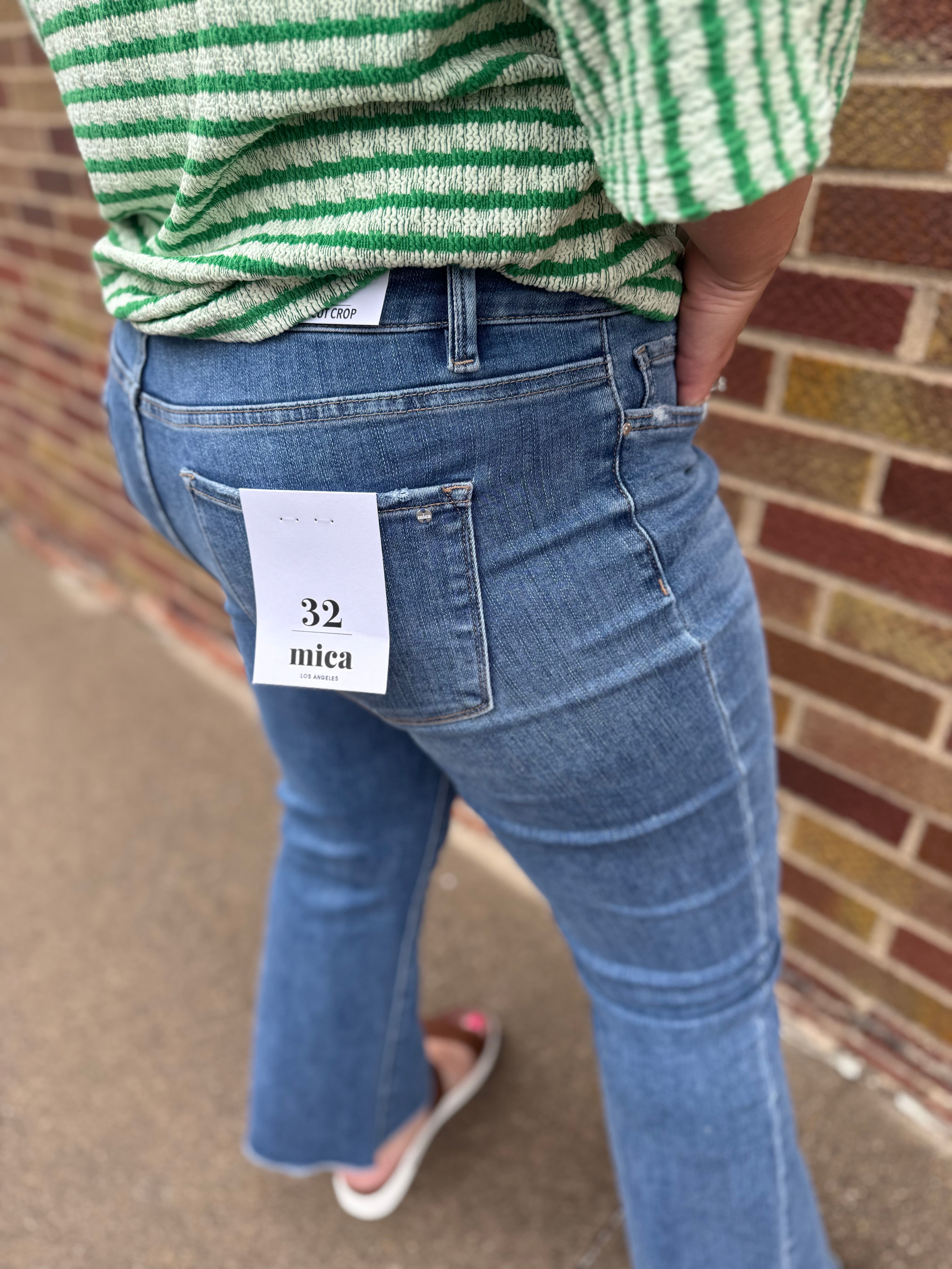 Experience the perfect blend of California Cool with Mica Denim's Mid Rise Boot Cut Crop. These pants, true to our tradition of high-quality denim, offer a timeless style with a contemporary twist. Our innovative design caters to your unique style, ensuring you shine in your own way. With a comfortable mid-rise fit and trendy boot cut, these crops are the ultimate addition to your wardrobe. Join us on this denim journey and let your inner shine flow with Mica Denim.