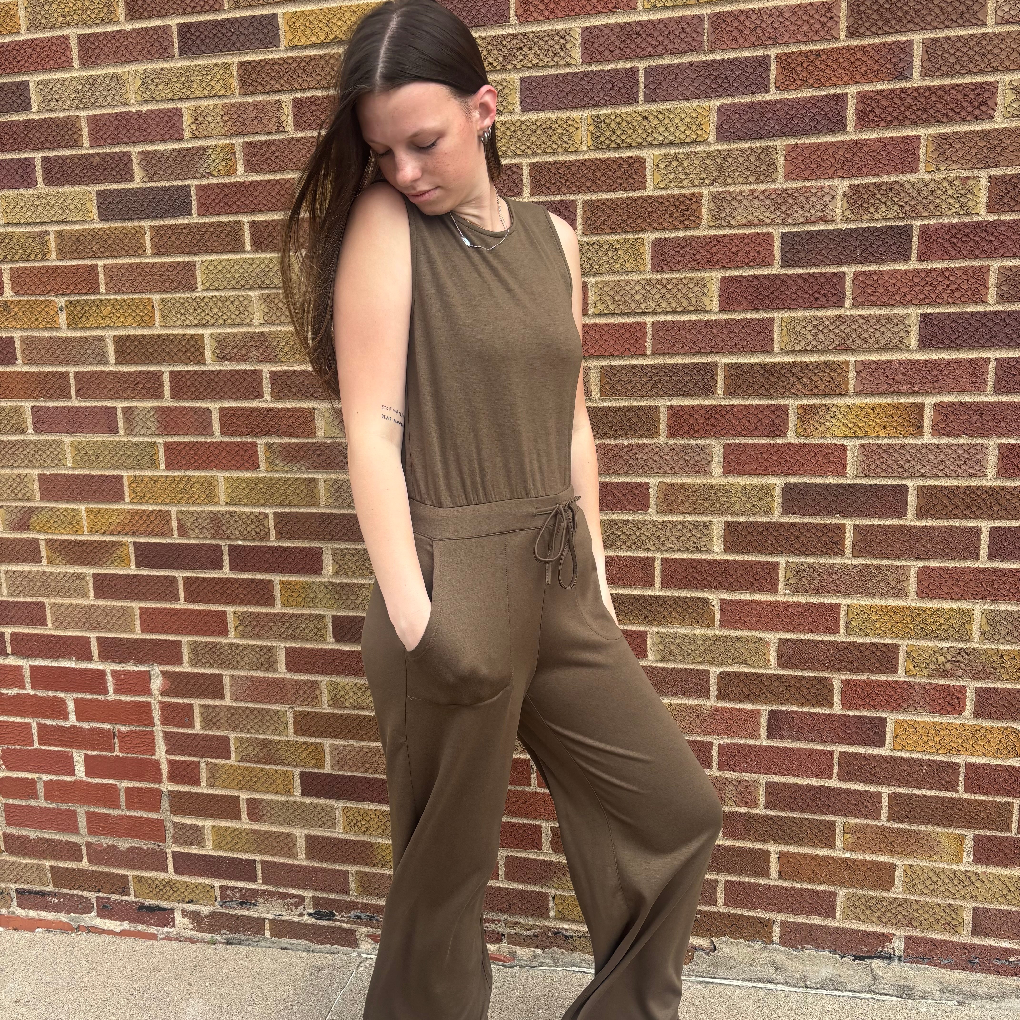Get ready to jump into style with this Solid Boat Neck Sleeveless Jumpsuit! With a fun keyhole back button closure, comfortable elastic waist and tie, and convenient side pockets, you'll be looking and feeling fabulous everywhere you go. Don't miss out on this one-piece wonder!