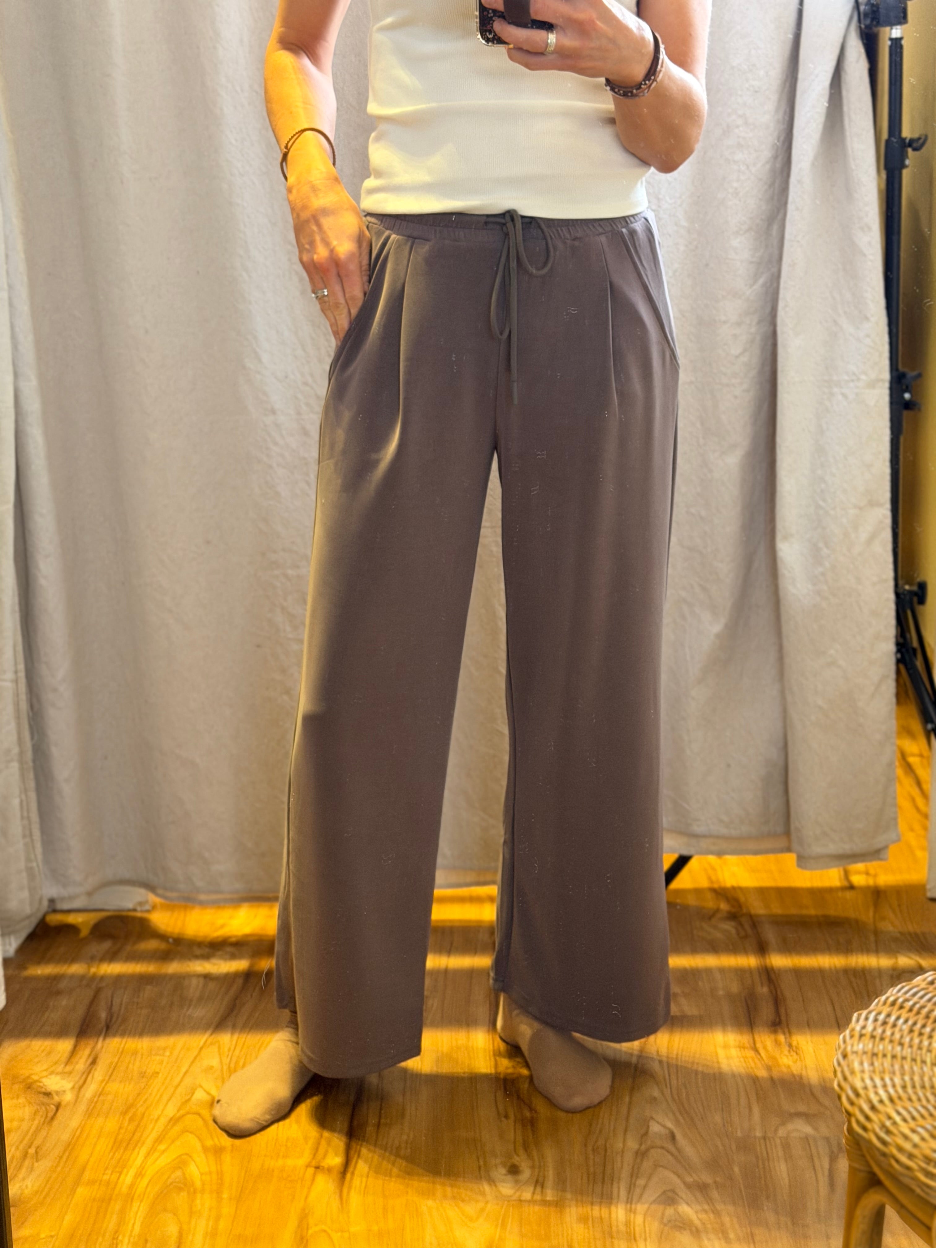 Wide Leg Pants w/Drawstring Waist