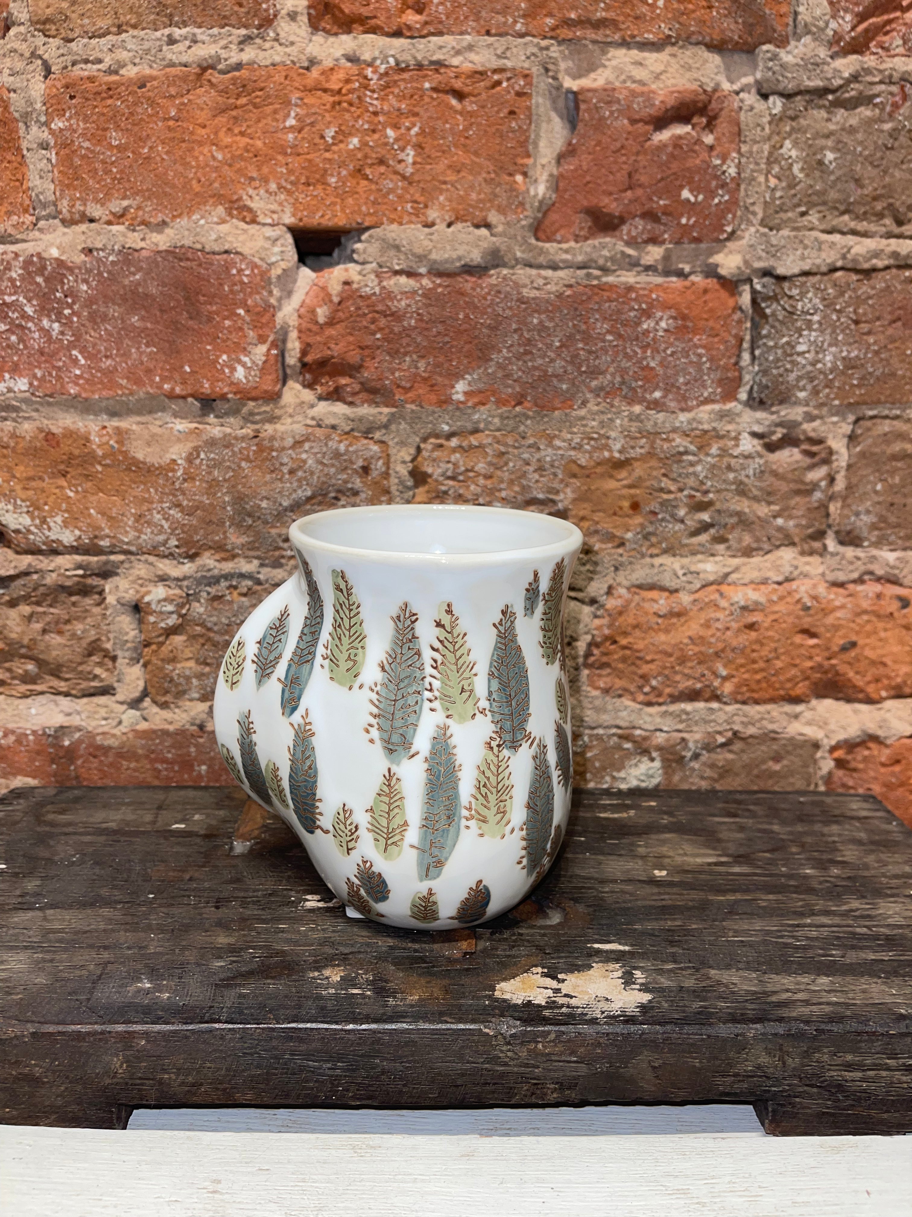 Experience cozy warmth with the Aspen Tree Handwarmer Mug. This 5-inch mug features a design that allows you to comfortably hold it with both hands, keeping your fingers warm while you enjoy your favorite hot beverage. Crafted for both style and function, its charming aspen tree print adds a touch of nature-inspired feel to your drink ware collection.