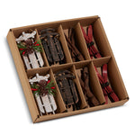 The Box of 8 Sleigh/Ski Ornaments, each measuring 4 inches, brings charming cabin vibes and a cozy atmosphere to your holiday décor. These thoughtfully crafted ornaments evoke nostalgic winter scenes, adding warmth and a rustic touch to your tree or seasonal display.