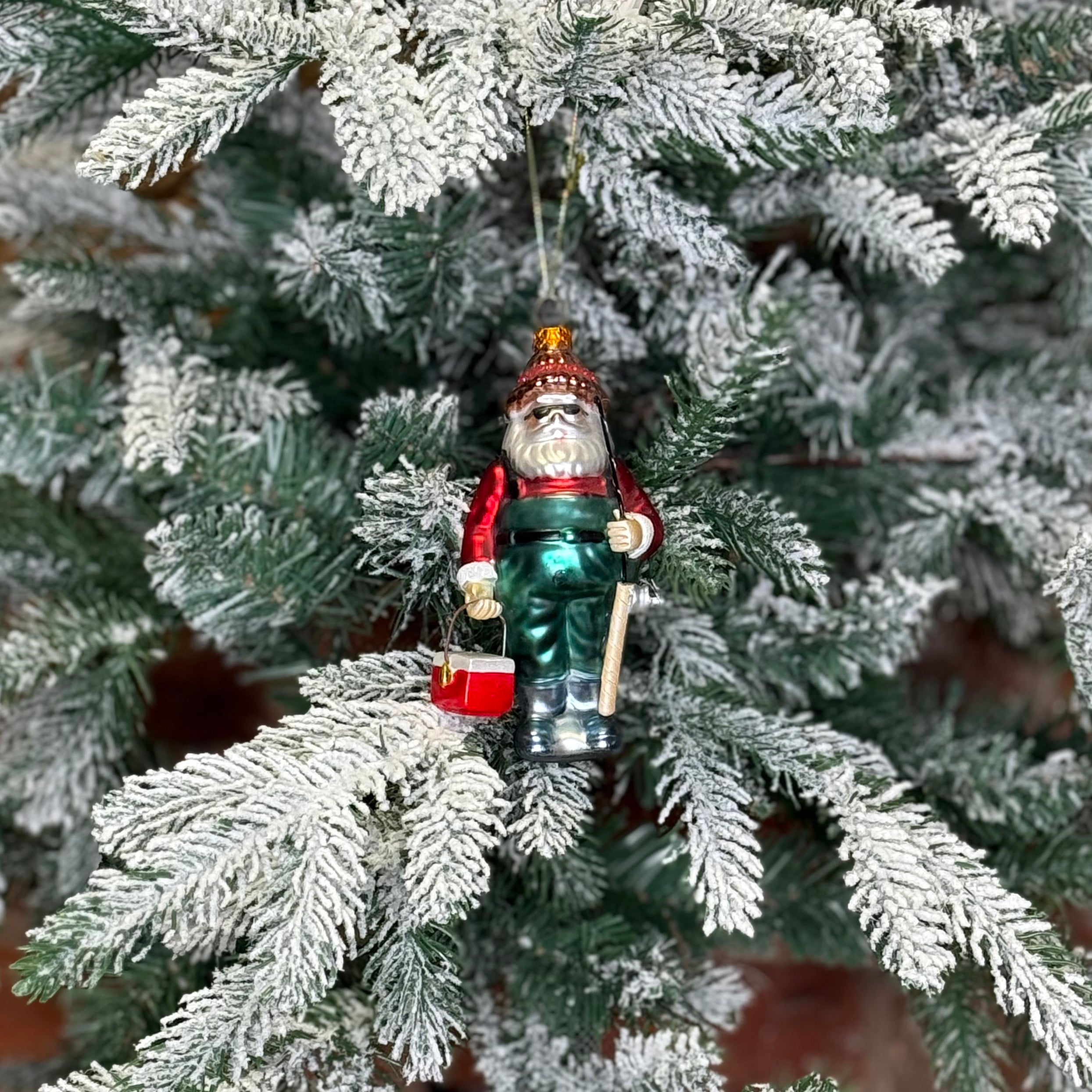 Add some holiday fun with this playful 5-inch glass Santa ornament! Dressed in cozy coveralls, Santa’s ready for a day of fishing with his trusty pole and cooler in tow. Perfect for bringing a splash of whimsy and outdoor cheer to your Christmas tree, this charming decoration is sure to reel in smiles all season long.