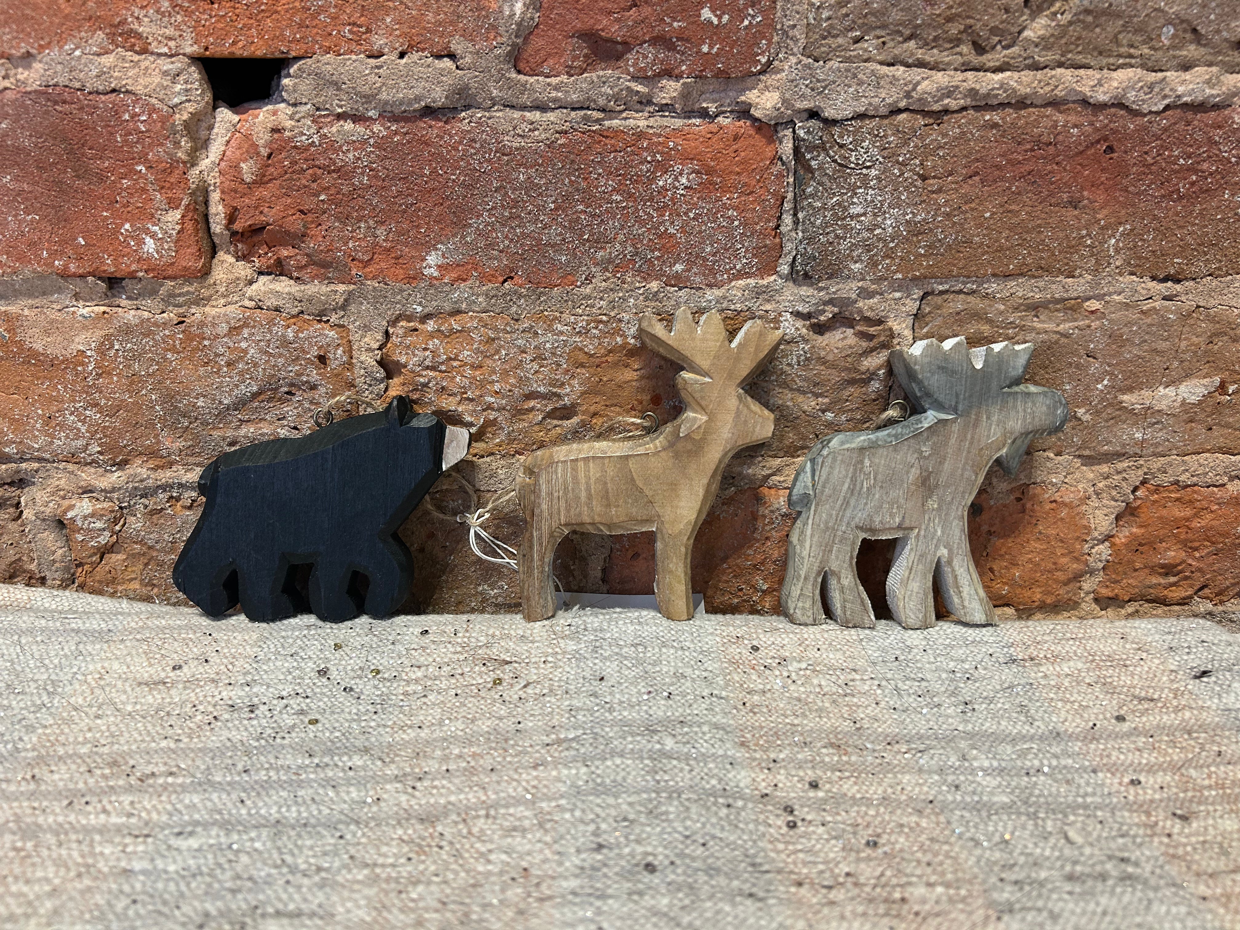 Bring a touch of woodland whimsy to your space with these thick, carved wooden forest animals. Choose from a charming bear, majestic moose, or graceful deer, each available in different rich stains to suit your style. Perfect for adding playful character to any room or as a unique gift for nature lovers.