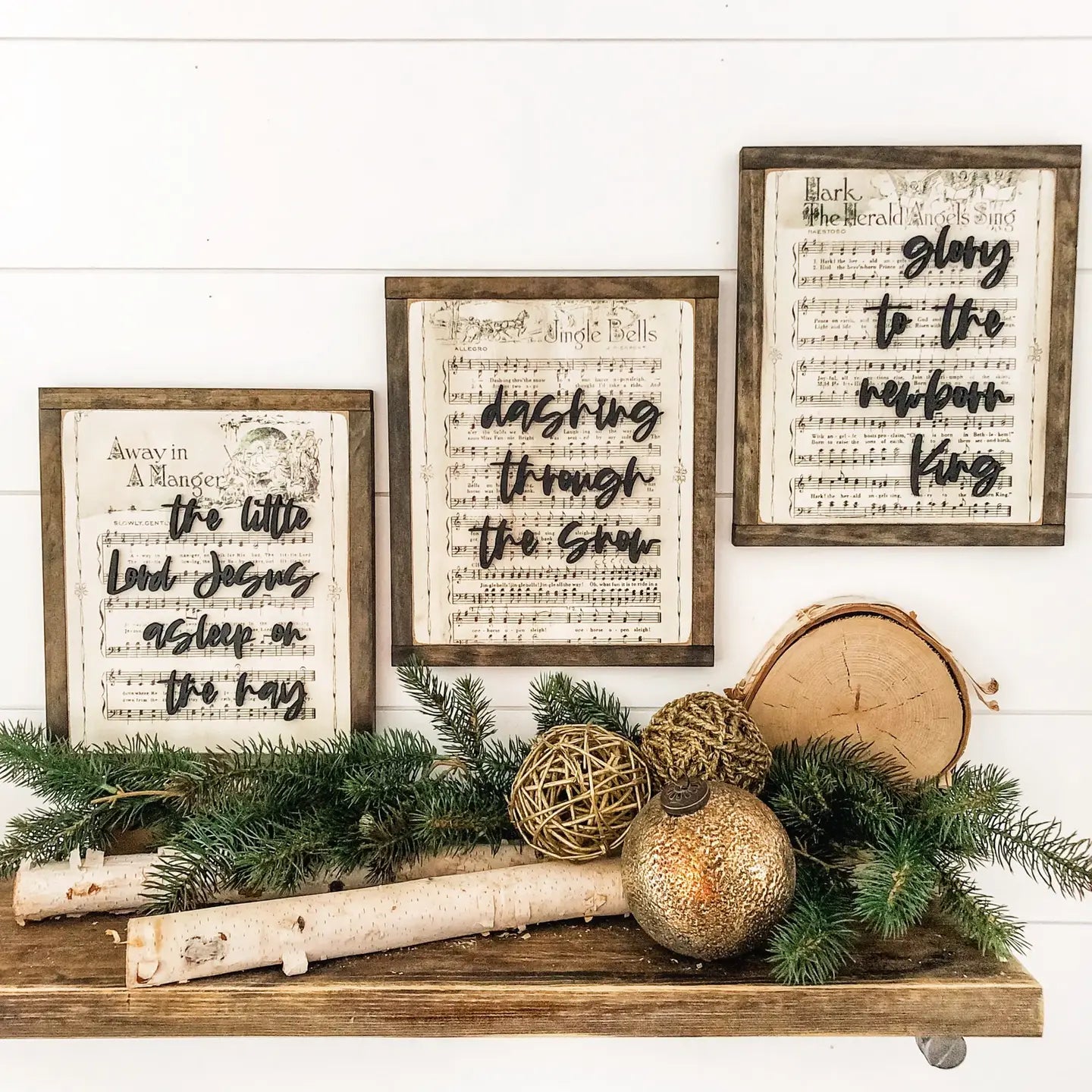 Handmade wooden sign with a distressed Christmas song as the background of the sign. The words on top are laser cut to give even more dimension to the sign.