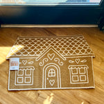 A durable faux coir rug in the shape of the displayed gingerbread house design. Faux coir offers the benefit of not shedding over time, unlike natural coir rugs, so the integrity of the design and colors will last longer. Rug can be used indoor or outdoor and features skid-resistant backing to help stay in place. Spot cleaning recommended. Our Gingerbread House rug comes packaged neatly rolled with tag displaying full rug design. A gingerbread-themed home accent that adds functional seasonal style.