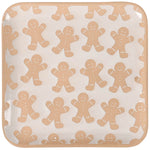 A durable stoneware tray displaying a snowy cream color with debossed happy gingerbread men in brown on the inside and a bare ceramic accent on the rim. Our Gingerbread Man tray is conveniently microwave, dishwasher, and food safe for easy use. A fun piece of gingerbread-themed tableware perfect for seasonal gatherings.