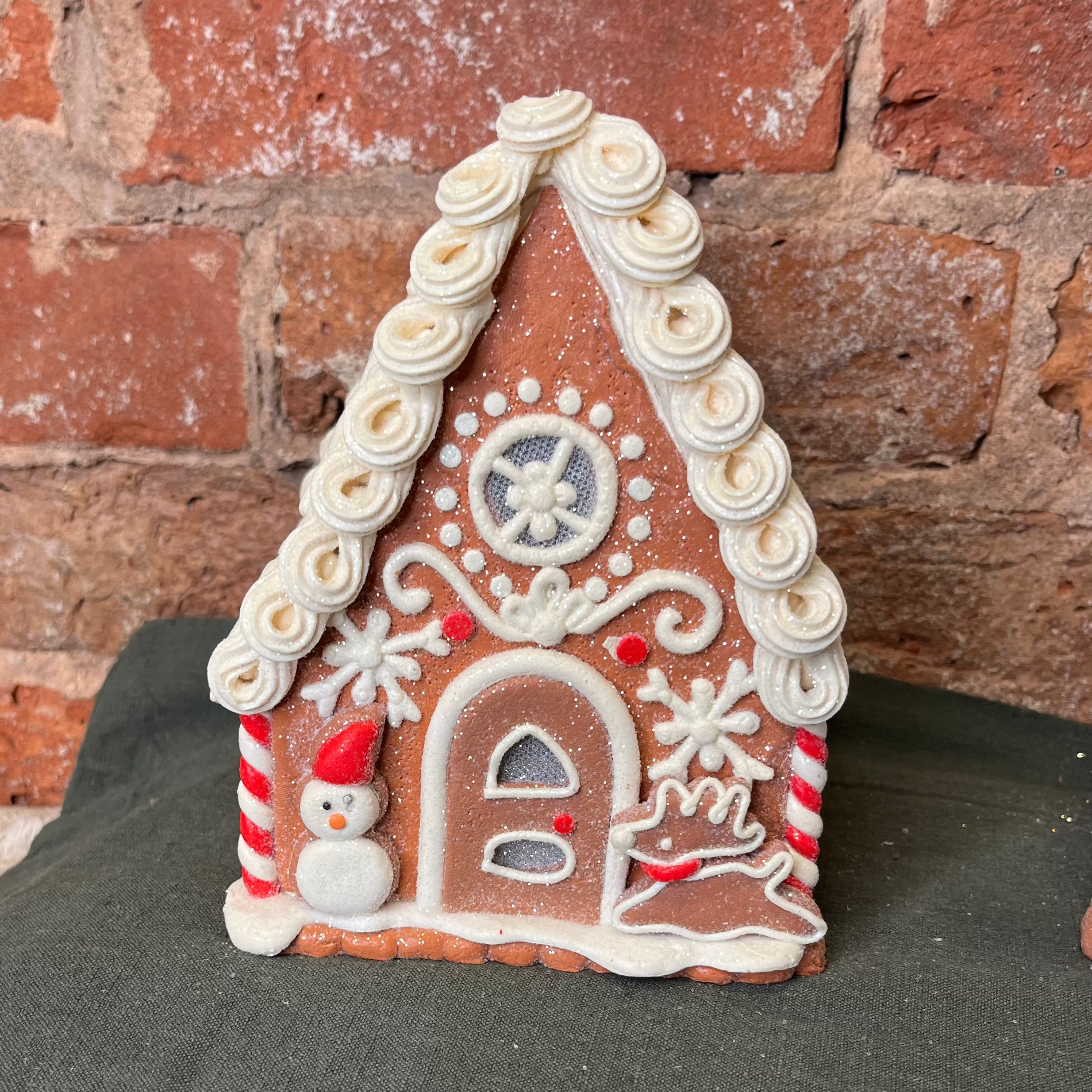 Bring holiday magic to life with this charming 6" lighted gingerbread house, featuring two delightful styles: a jolly snowman and a festive reindeer. Powered by 3 AAA batteries, it glows warmly without cords, making it easy to place anywhere. Perfect for adding playful cheer to your seasonal décor or gifting to spread the holiday spirit!
