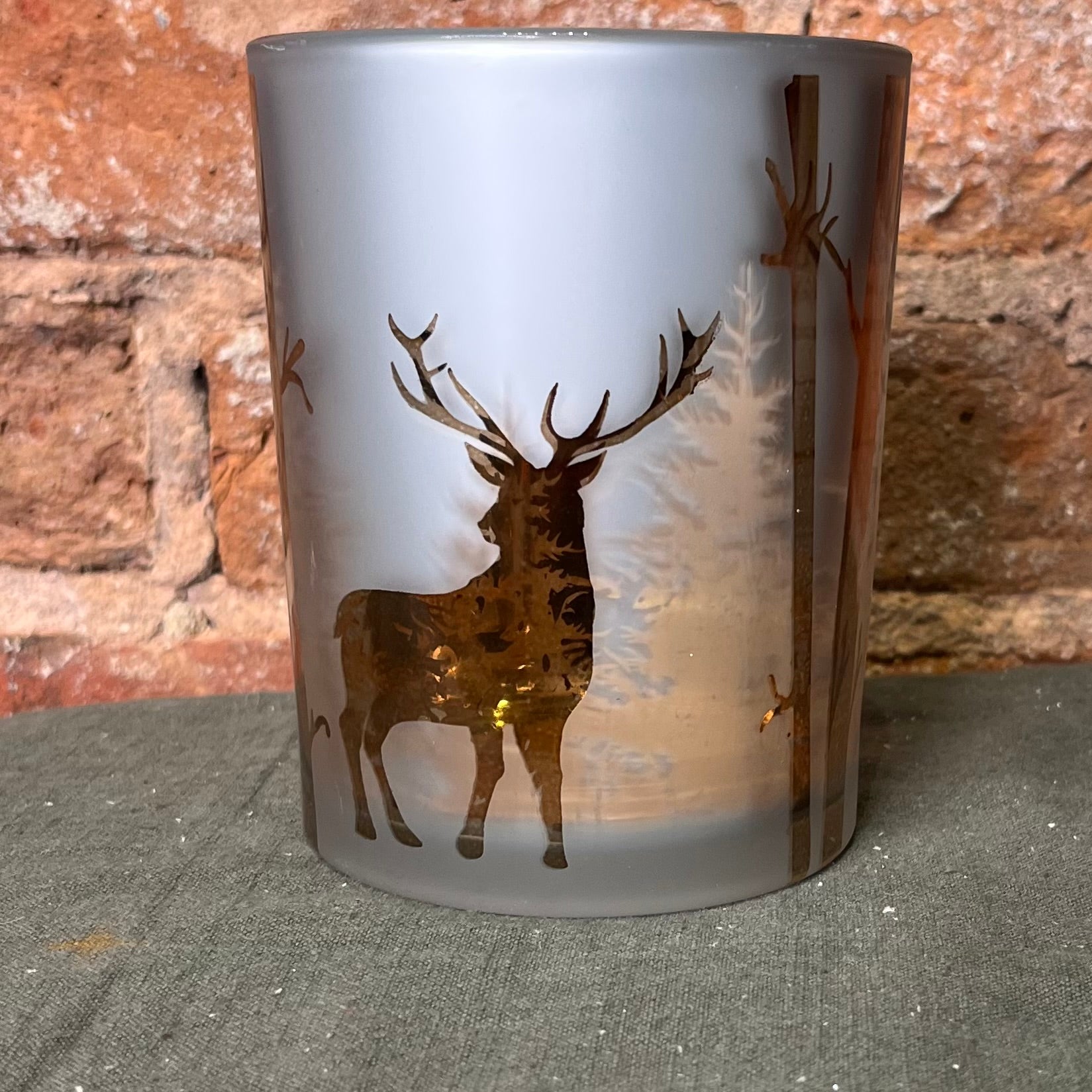 Bring a touch of winter magic to your space with this 5” mercury candle holder featuring a playful winter scene of deer among trees. Its shimmering finish catches the light beautifully, creating a cozy, festive glow that's perfect for chilly evenings or holiday charm. Light it up and let the woodland whimsy brighten your day!