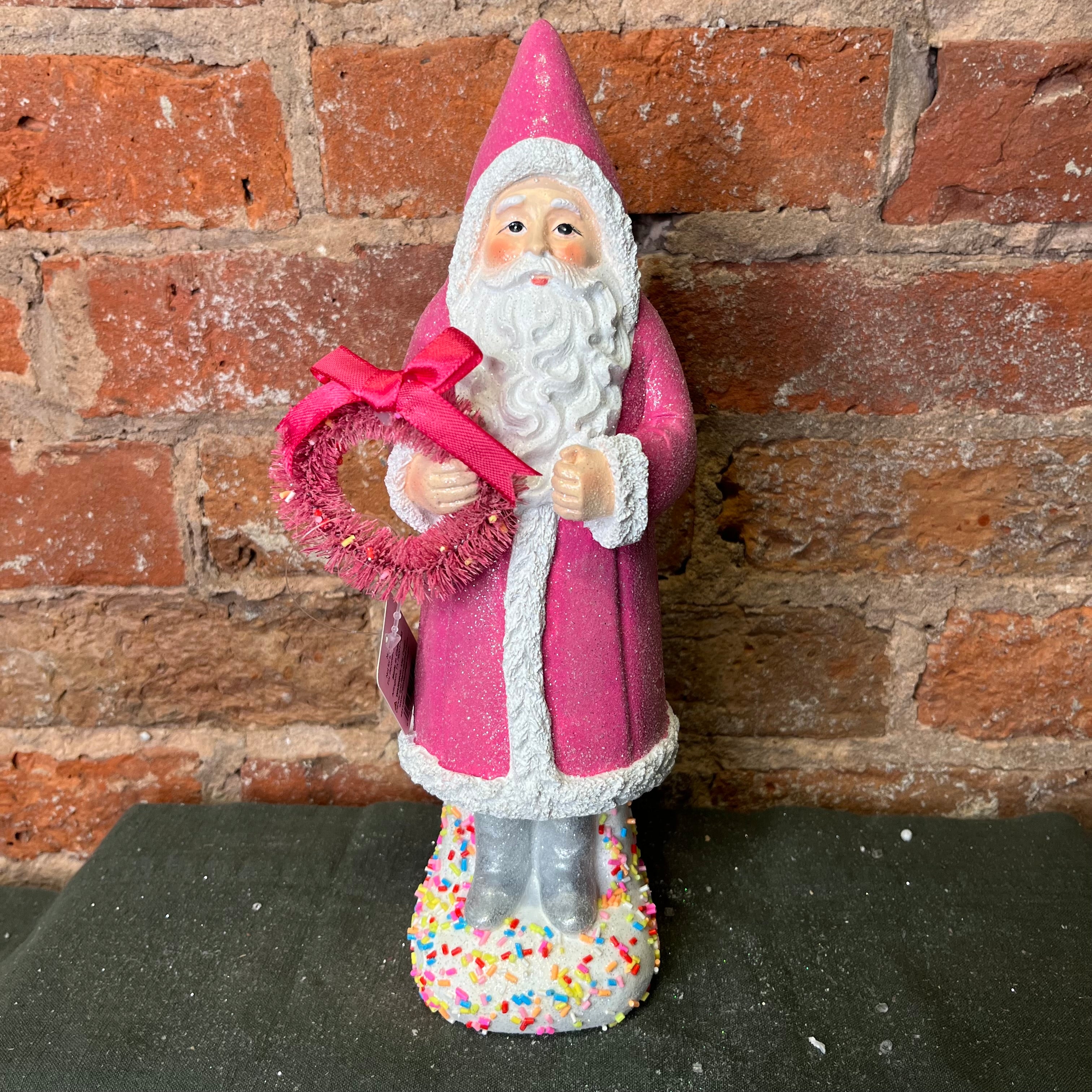 Meet the Pink Sprinkle Santa, standing 11.75 inches tall and ready to spread holiday cheer! This playful Santa holds a vibrant pink wreath, adding a sweet and unexpected twist to your festive décor. Perfect for bringing a sprinkle of fun and color to any room this season.