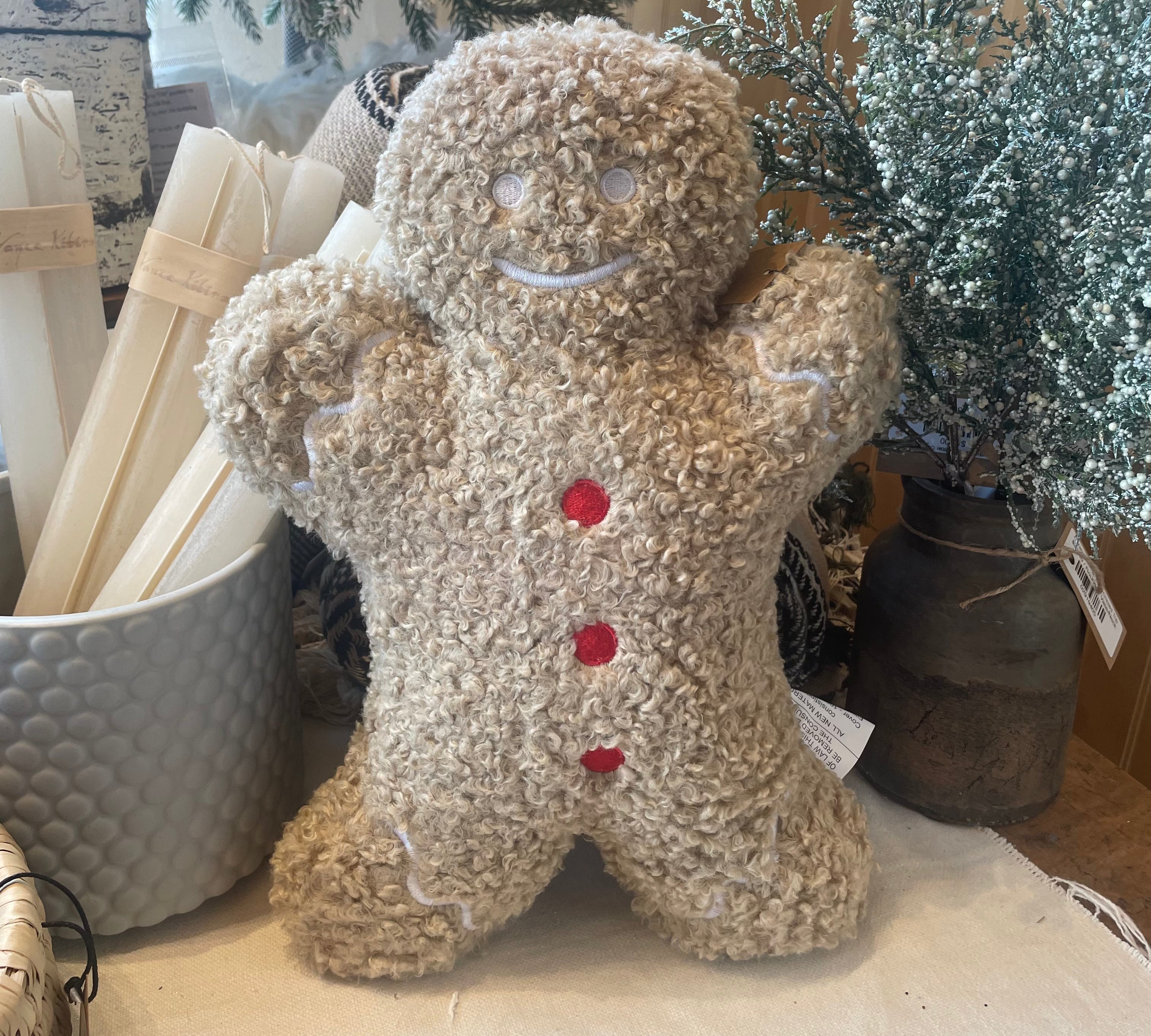Boucle Gingerbread Man with Red Buttons Pillow 10.5”