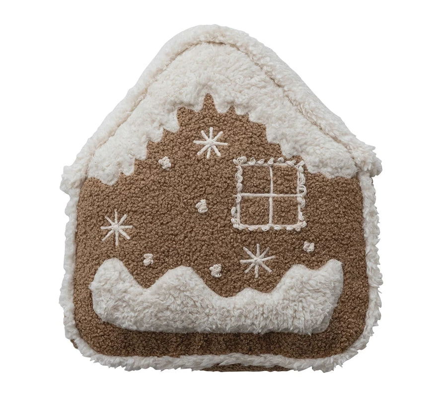 Boucle & Faux Sherpa Gingerbread House Pillow 13”