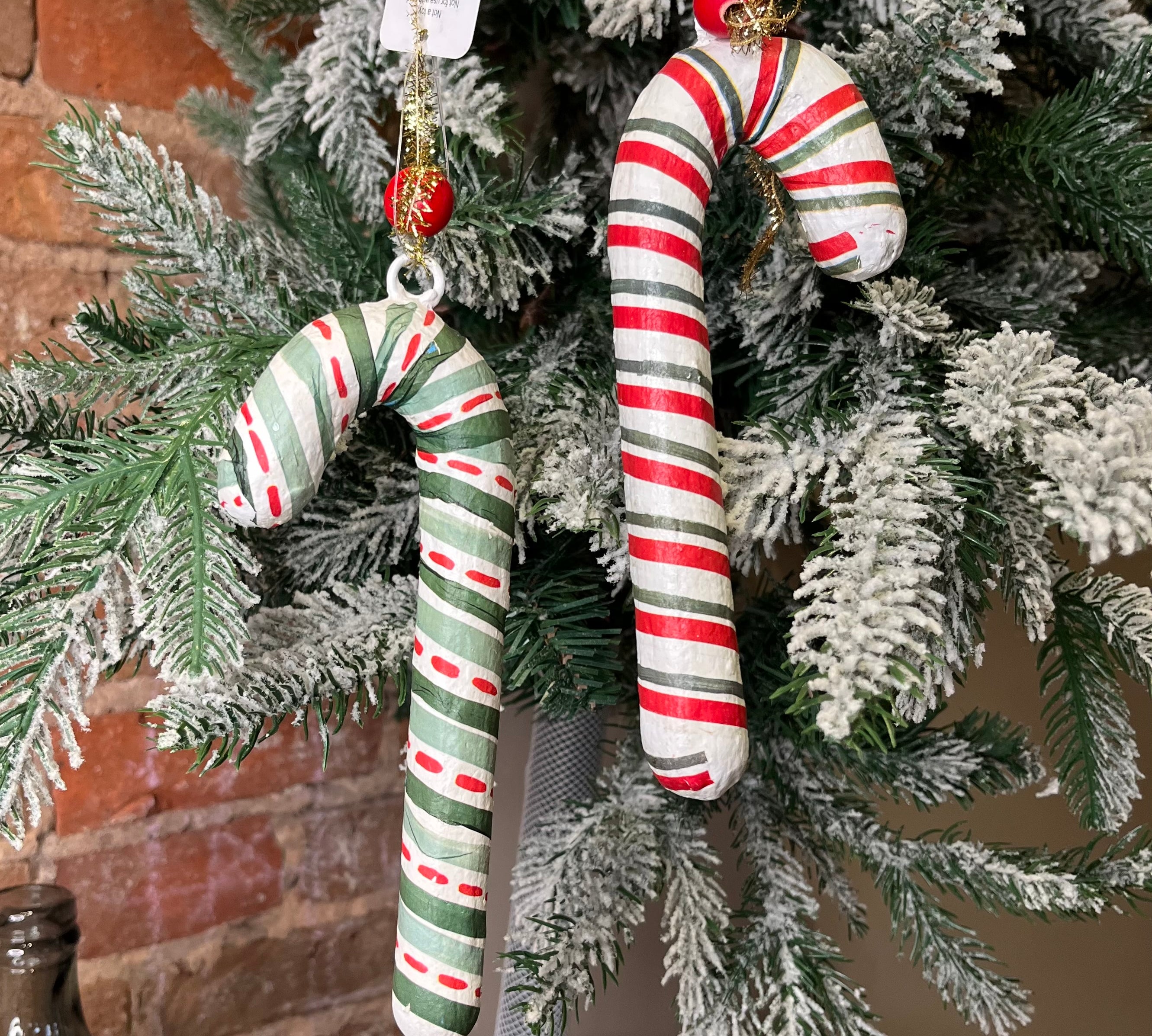 Paper Mache Candy Cane Orn 7”